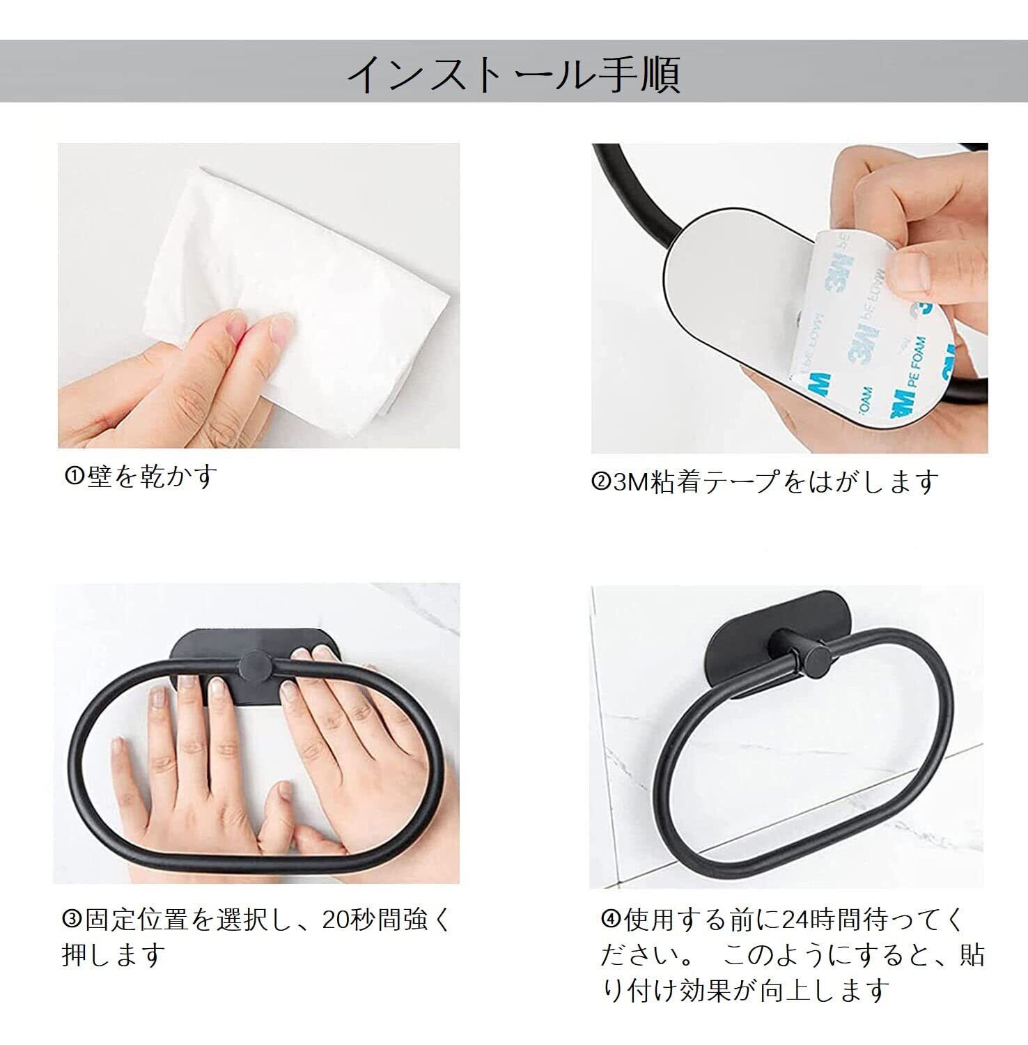 【穴なし取り付け】3Mの強力な両面ステッカーを使用し、20秒間押すだけです。壁がすり減る可能性を回避。設置する前に、必ず壁をきれいに拭いてください。女の子でも一人でできる簡単な取り付け。