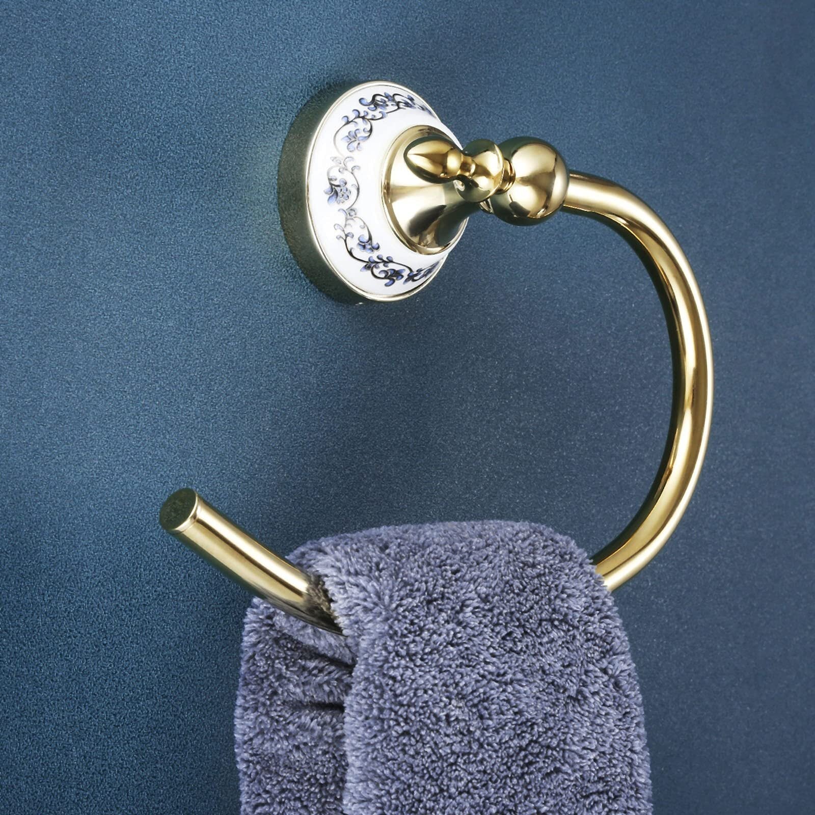 【良いデザイン】このタオルリングは染付の陶磁器の柄というヨーロピアンアンティークのデザインとを採用し、美しく高級感があります。取り付けると家に素晴らしい雰囲気を加えます。隠されたネジのデザインとモダンな外観は様々なスタイルに適しています。