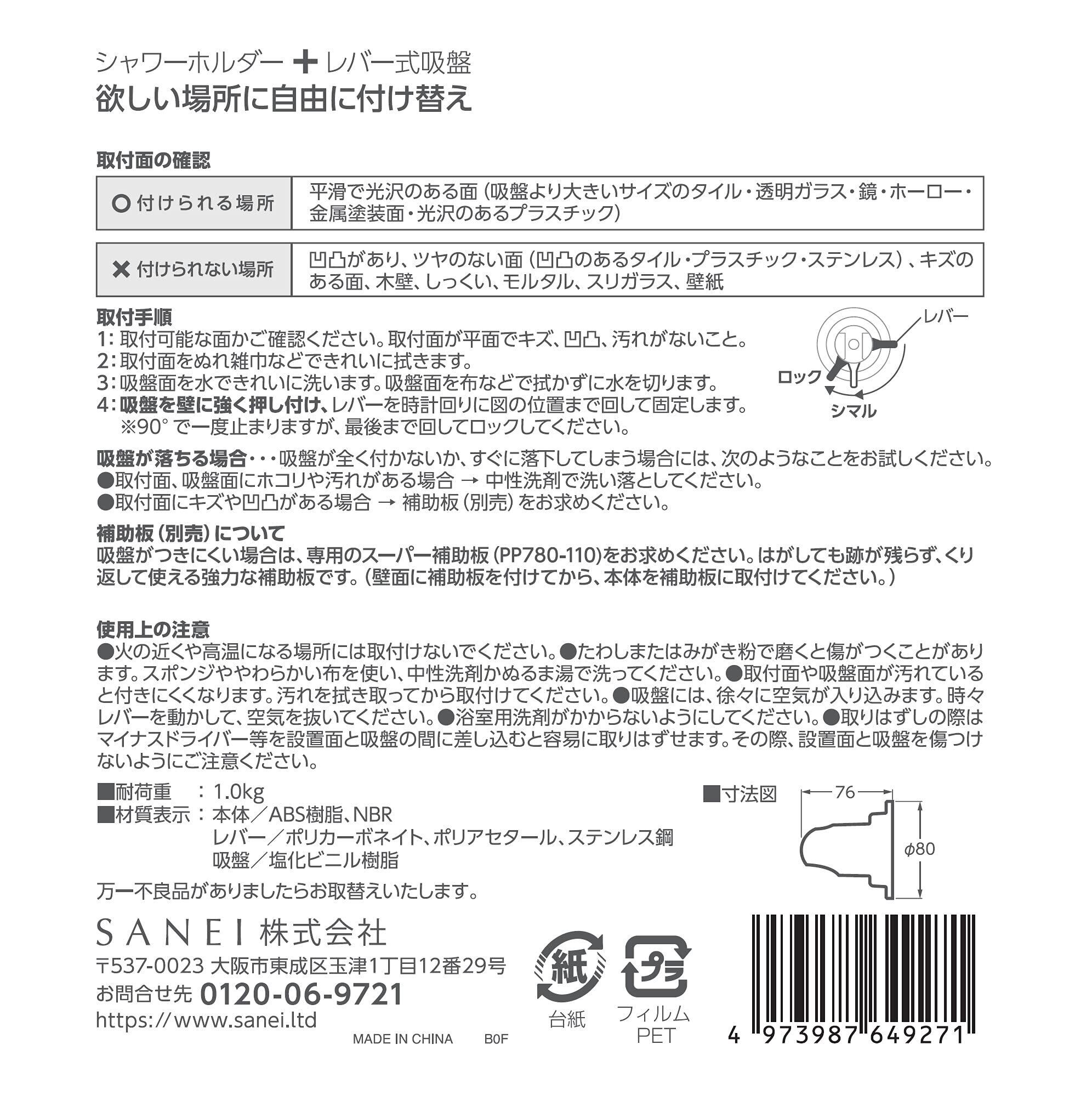 SANEI(サンエイ) シャワーホルダー 吸盤シャワーホルダー 強力真空式吸盤 メッキ 簡単取付 PS30-353