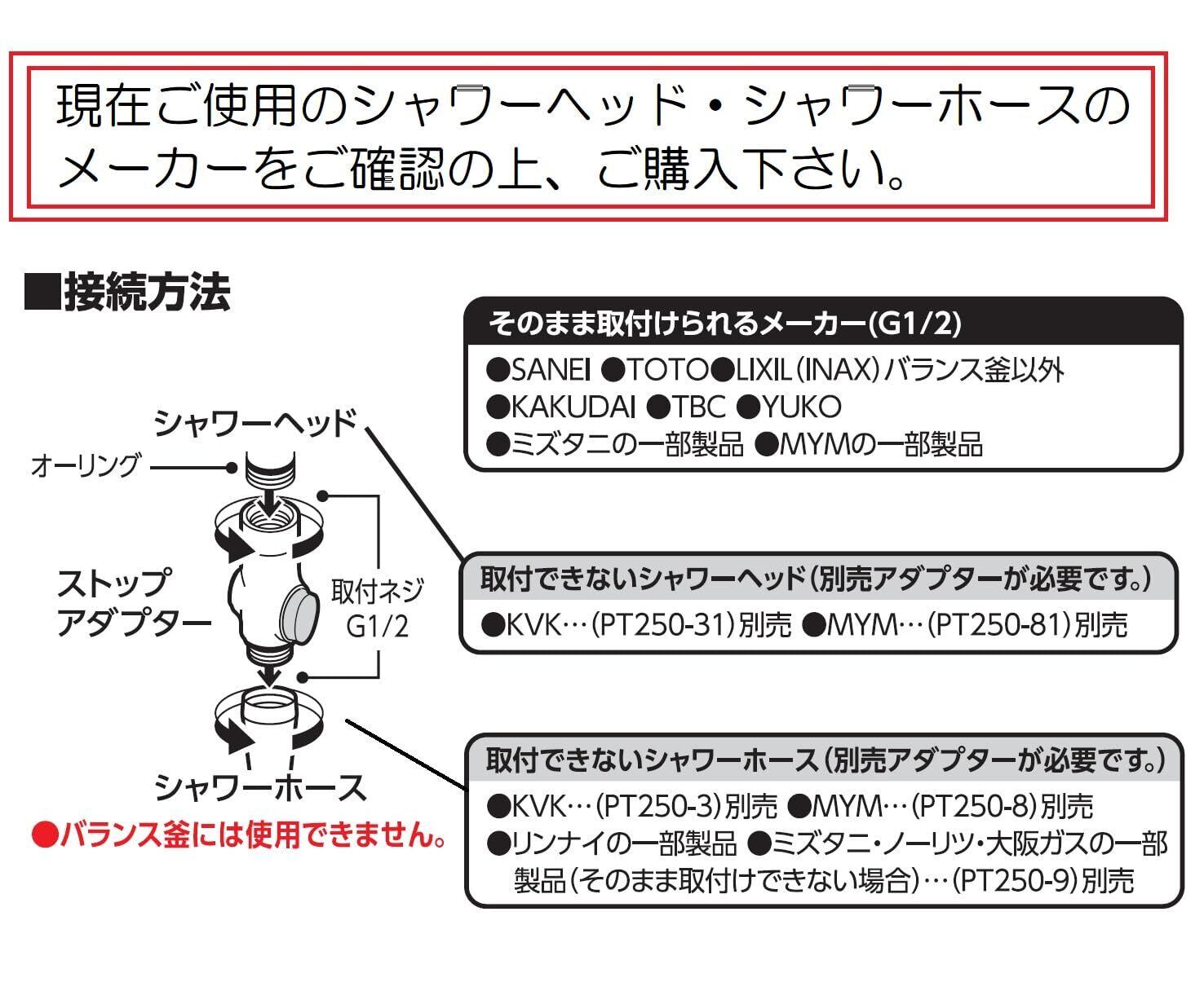 ●シャワーの流量が落ちる可能性があります。低水圧地域でのご使用の際、節水シャワー、機能付きシャワーなど極端に流量が落ちる場合には使用しないでください。