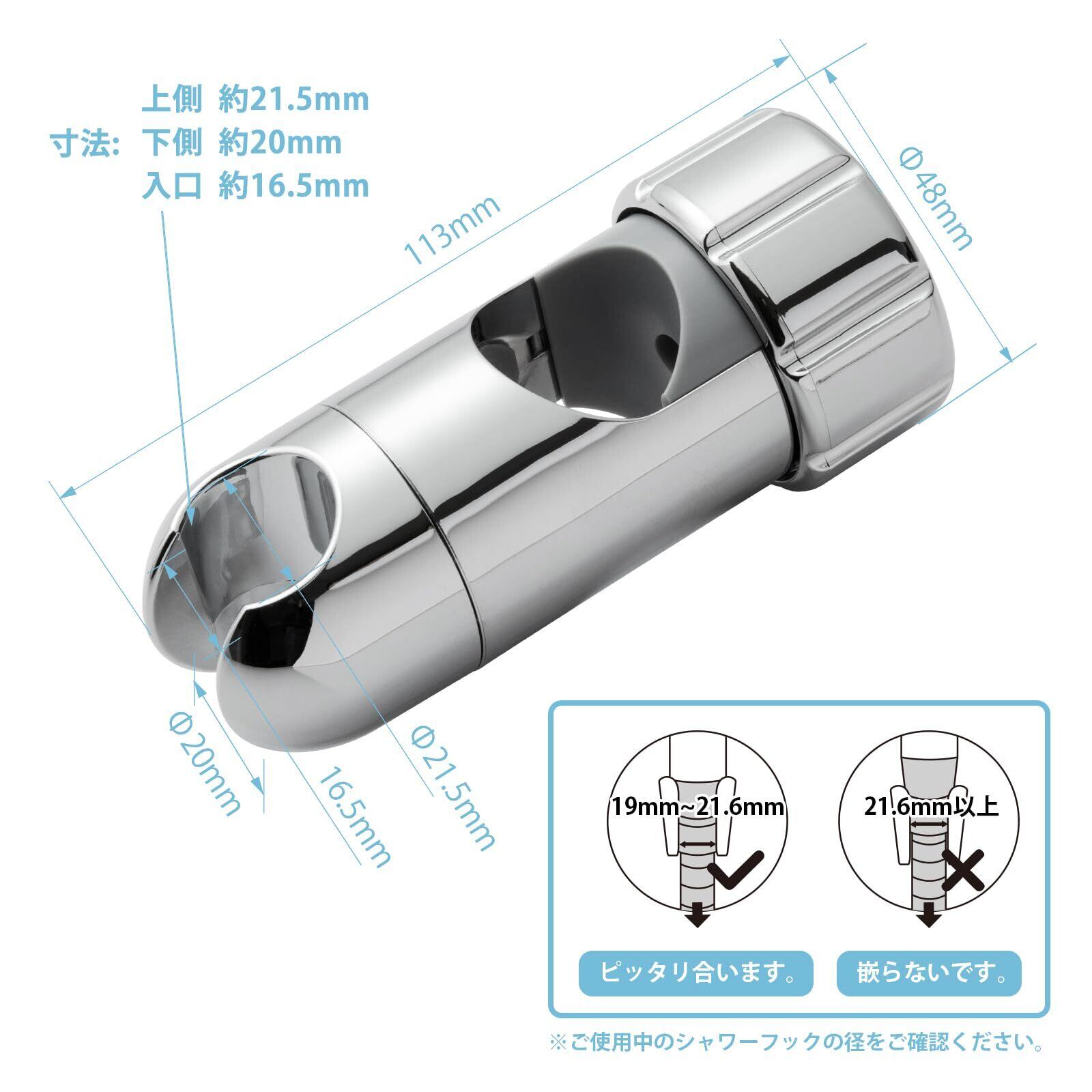 [シャワーヘッド適用サイズ] ご購入の前に、ぜひシャワーホース金具の径をご確認ください。ホース金具の径が19mmから21.6mmまで適用します。