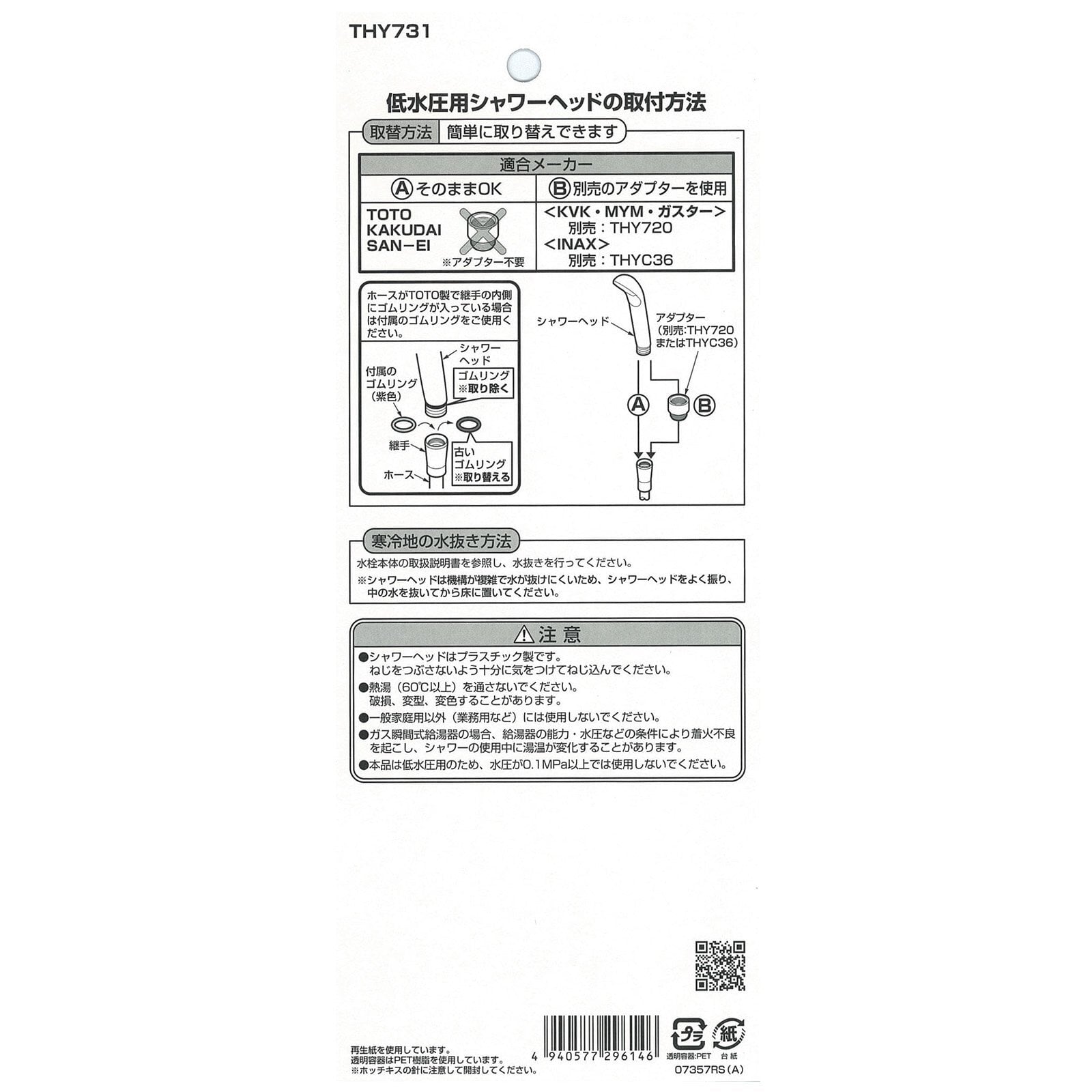 LIXIL製は、別売りのアダプター THYC36 をご使用ください。