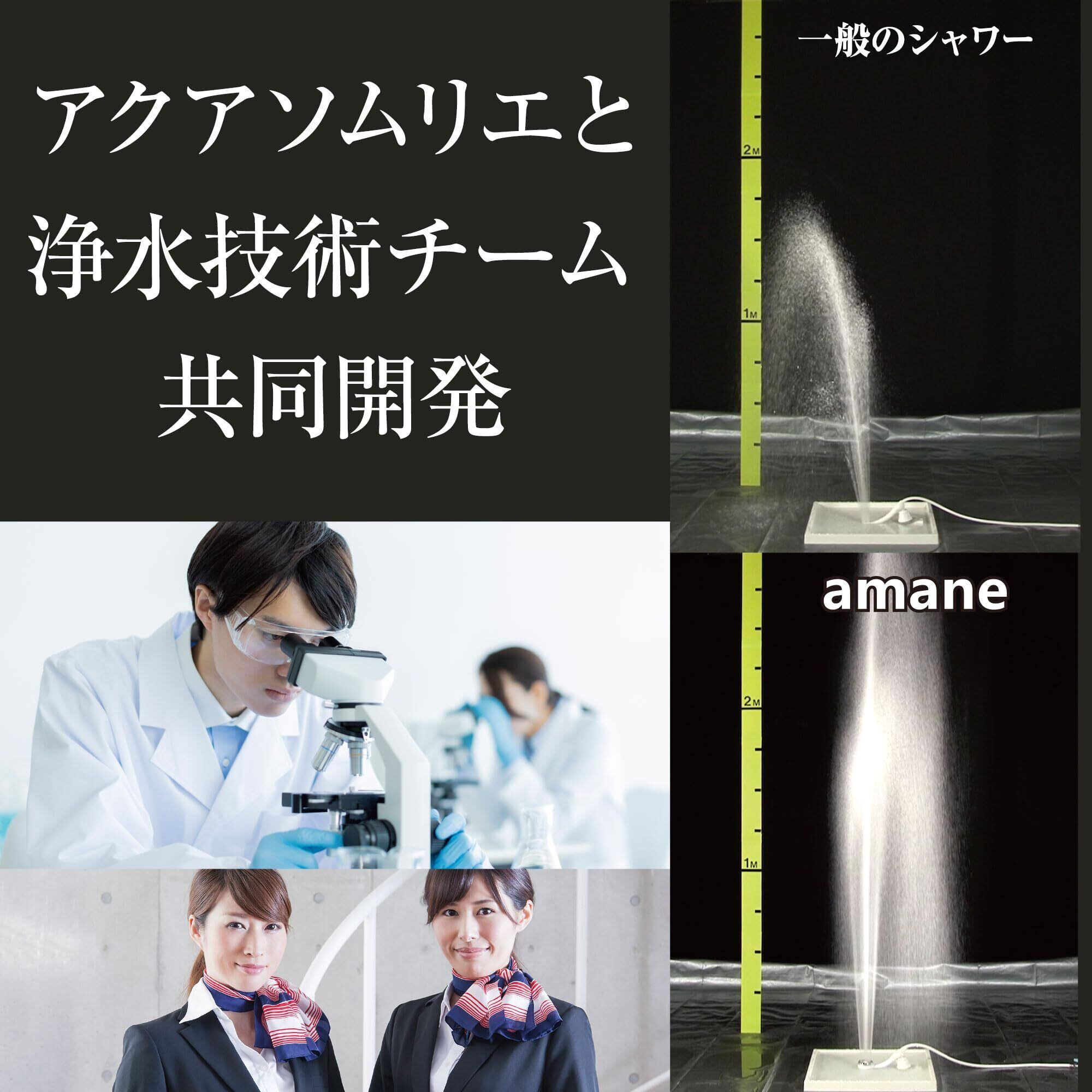 【ブランド紹介】50年の歴史ある老舗浄水器メーカー「オムコ東日本」の技術者とアクアソムリエが共同開発した純日本製マイクロナノバブルシャワーヘッドブランド「amane」。超微細ホール0.19mm、615個のマルチイオンプレートのシャワープレート構造により、肌に優しくやわらかい「ミスト感覚」の浴びごこちと高水流ですっきりとした汚れ落ちの良さ、節水効果を実現。そして、美容水カートリッジを選ぶことによりあなたの肌や髪を効果的に美しくケアします。化粧水や美容液では決して得られない「水美容」で毎日のシャワータイムを究極の美容時間に変えてみませんか?