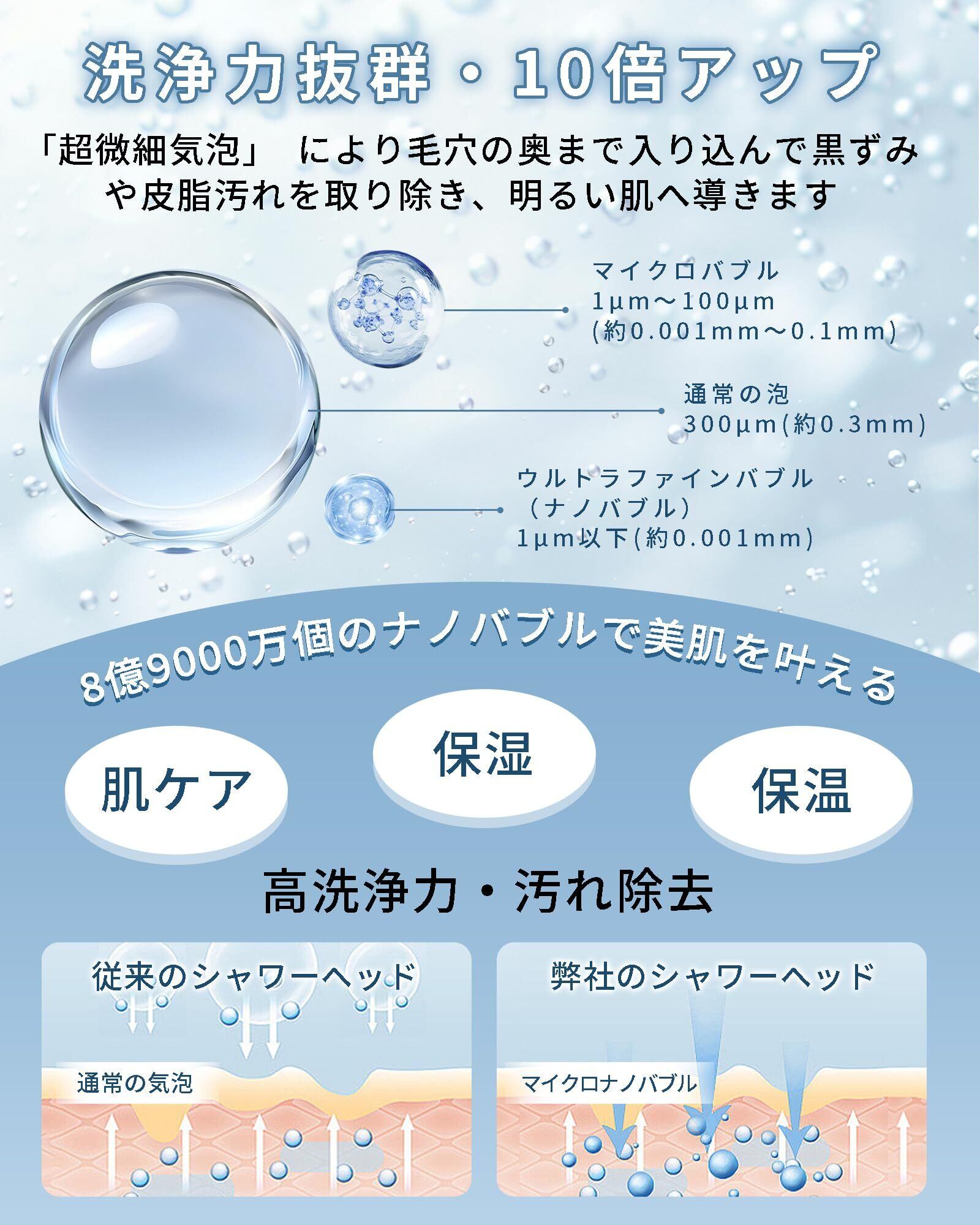【シャワーヘッド マイクロナノバブルが生む奇跡の泡環境】温泉郷の湯けむりに包まれるような、驚異のふわふわ泡が全身を優しく覆います。シャワーヘッドエステ級深層洗浄は、毛穴の奥に潜む皮脂・古い角質を浮かせてスッキリ除去。従来のシャワーでは実現できなかった「洗浄力」と「保湿性」の両立を実現。マイクロナノバブルが皮膚表面の微細な凹凸に入り込み、汚れを物理的に剥離。さらに泡に含まれた微細水滴が角質層に浸透し、洗いながら潤いを補給。美容成分配合ボディソープの効果も3倍向上!毎日のバスタイムが、単なる清潔ケアから「自宅で楽しむ高級温泉スパ」へ昇華。育児・仕事の疲れを、贅沢な泡の癒しで完全リセット!