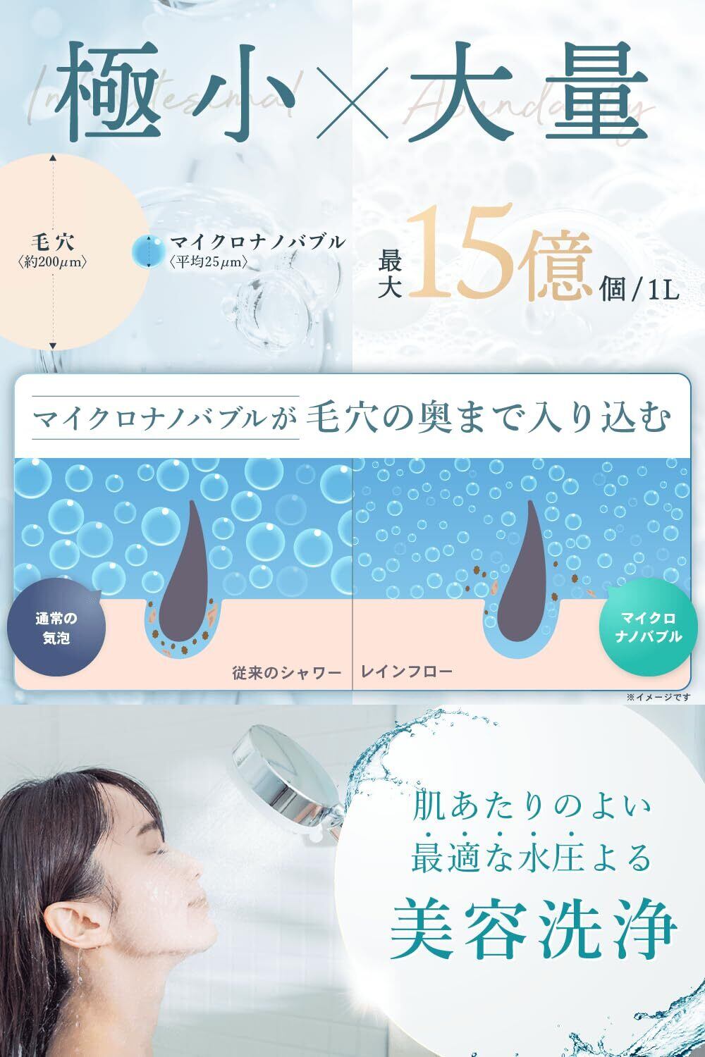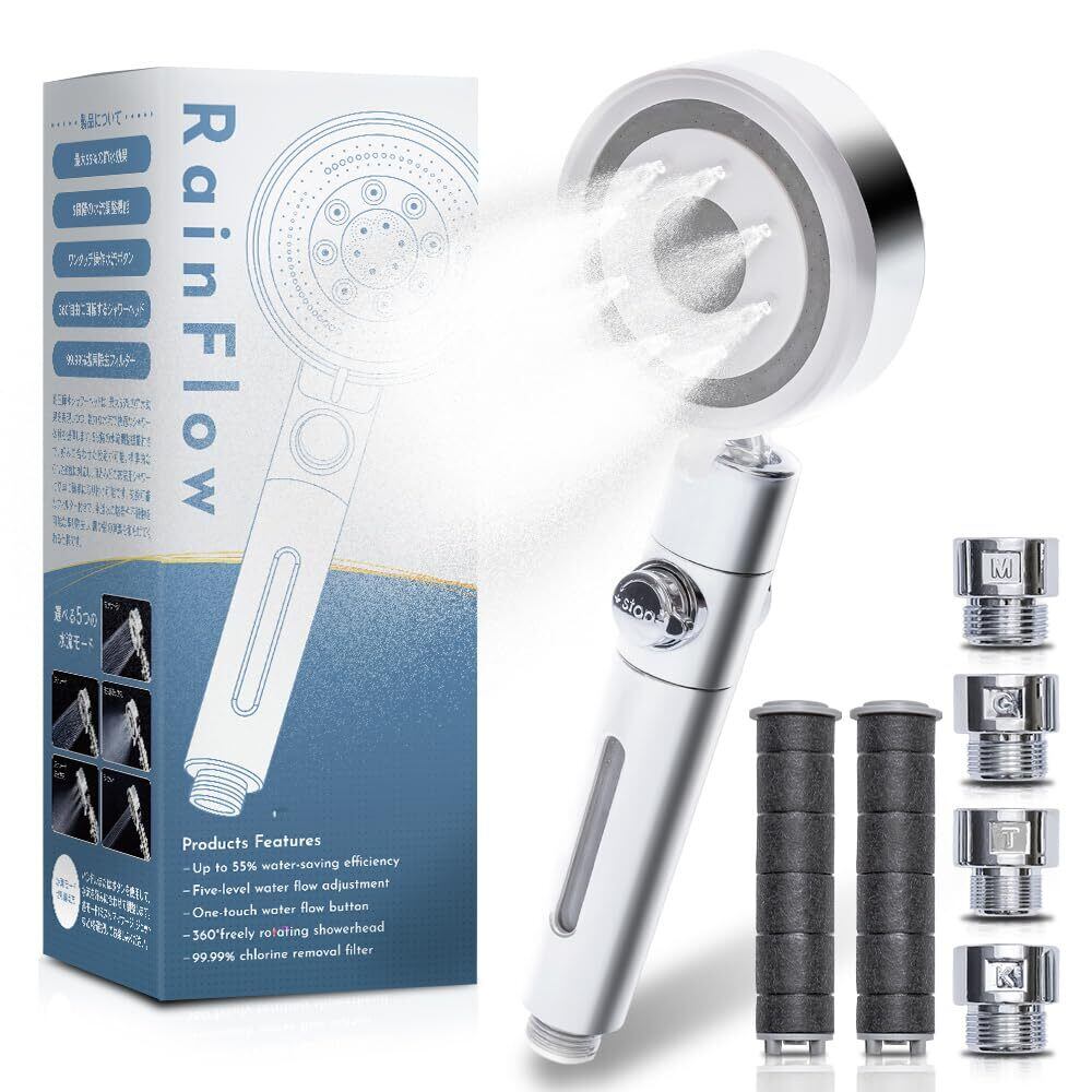 【専門医監修】シャワーヘッド マイクロナノバブル 節水シャワーヘッド 塩素除去【業界トップモデルの潤いケア】肌ケア 美髪 塩素除去2本付き 最大60%の節水 RainFlow