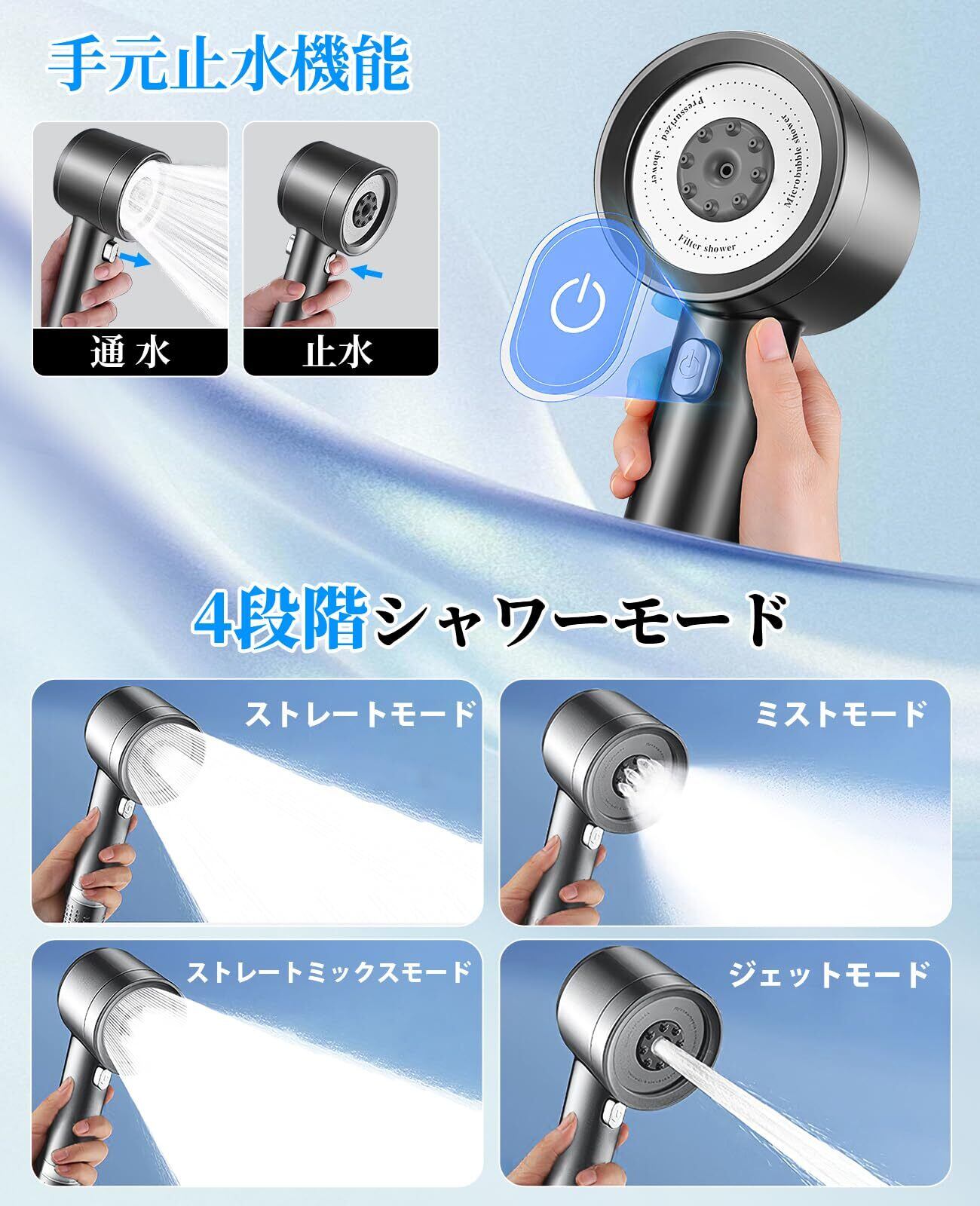 シャワーヘッド マイクロナノバブル 【2025新登場・塩素除去・90%節水】シャワーヘッド 節水 高水圧 手元止水 超微細泡 極細水流 節水90%以上 4段階モード 肌ケア 美髪 毛穴汚れ除去 高洗浄力 保湿保温 ミスト マイクロバブル シャワー 4種類アダプター付き 取り付け簡単 ダークグレー | KSショップ