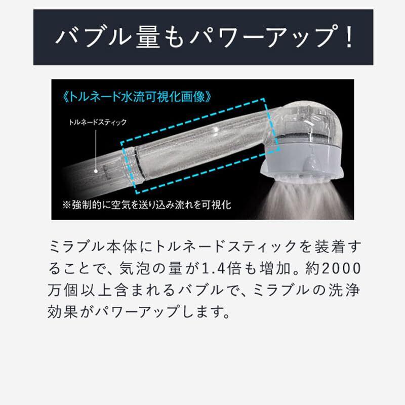 ミラブルプラスシャワーヘッド ウルトラファインバブル 美容シャワーヘッド トルネードスティック付き 肌深度清潔 肌ケア 塩素低減