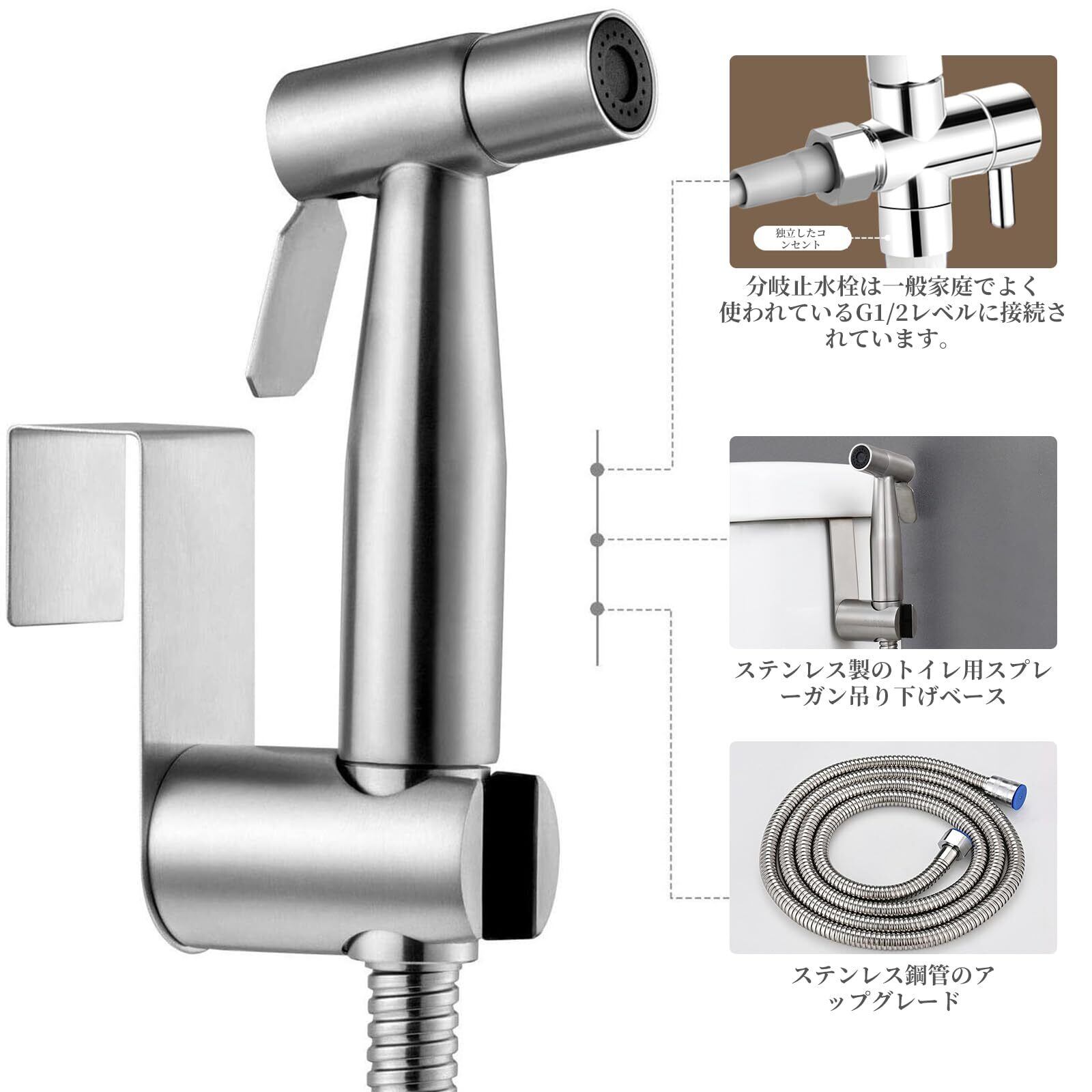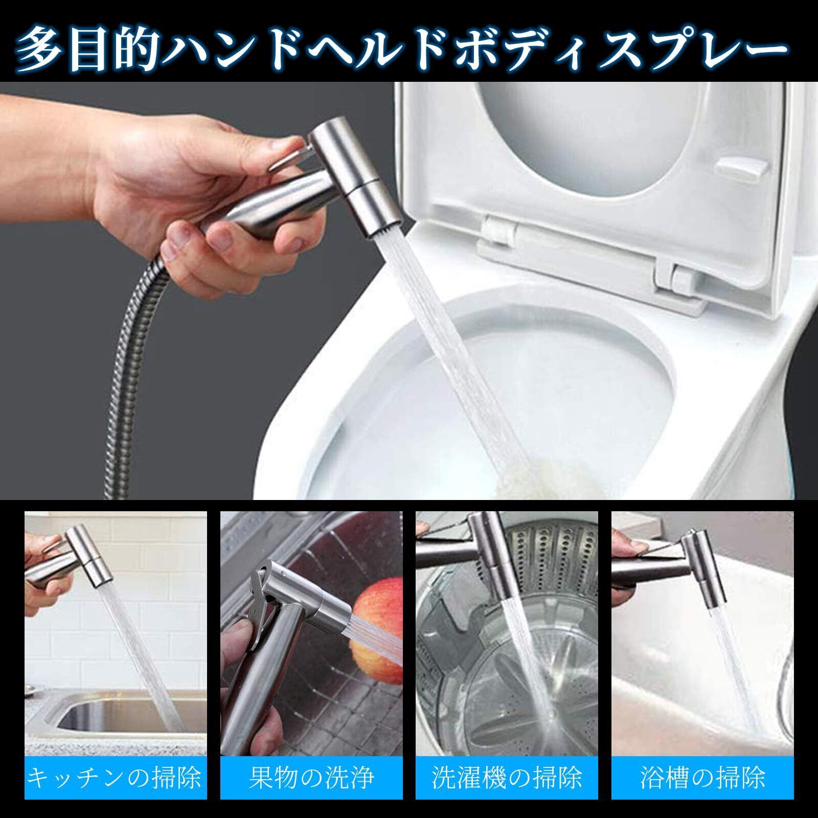 トイレ掃除用 ノズルセット シャワーヘッド 便器洗浄 高水圧 洗浄セット 分岐水栓付き ステンレス巻ホース 掃除 節水 水流調整 ハンドヘルドシャワー トイレ用 浴室用 屋外用 多機能 1.5m