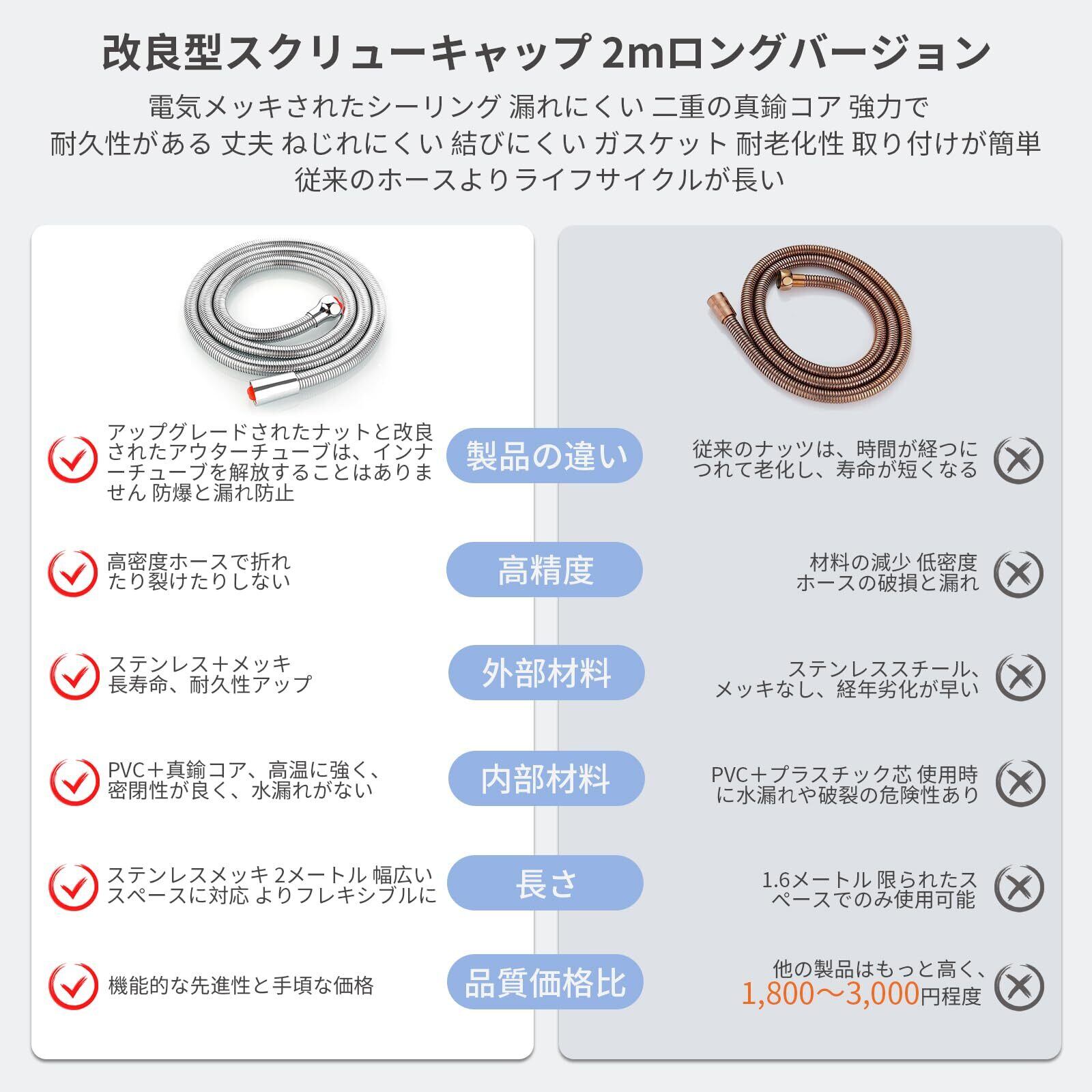aninako シャワーホース シャワー シャワー シャワーホース ステンレス 用 1.5/2m アダプター付 高水圧 耐久 360°回転 絡まり防 柔軟 蛇腹 軽量 螺帽の改良 防爆 取付簡単(二重銅細密加工シャワー管2メートル) | KSショップ