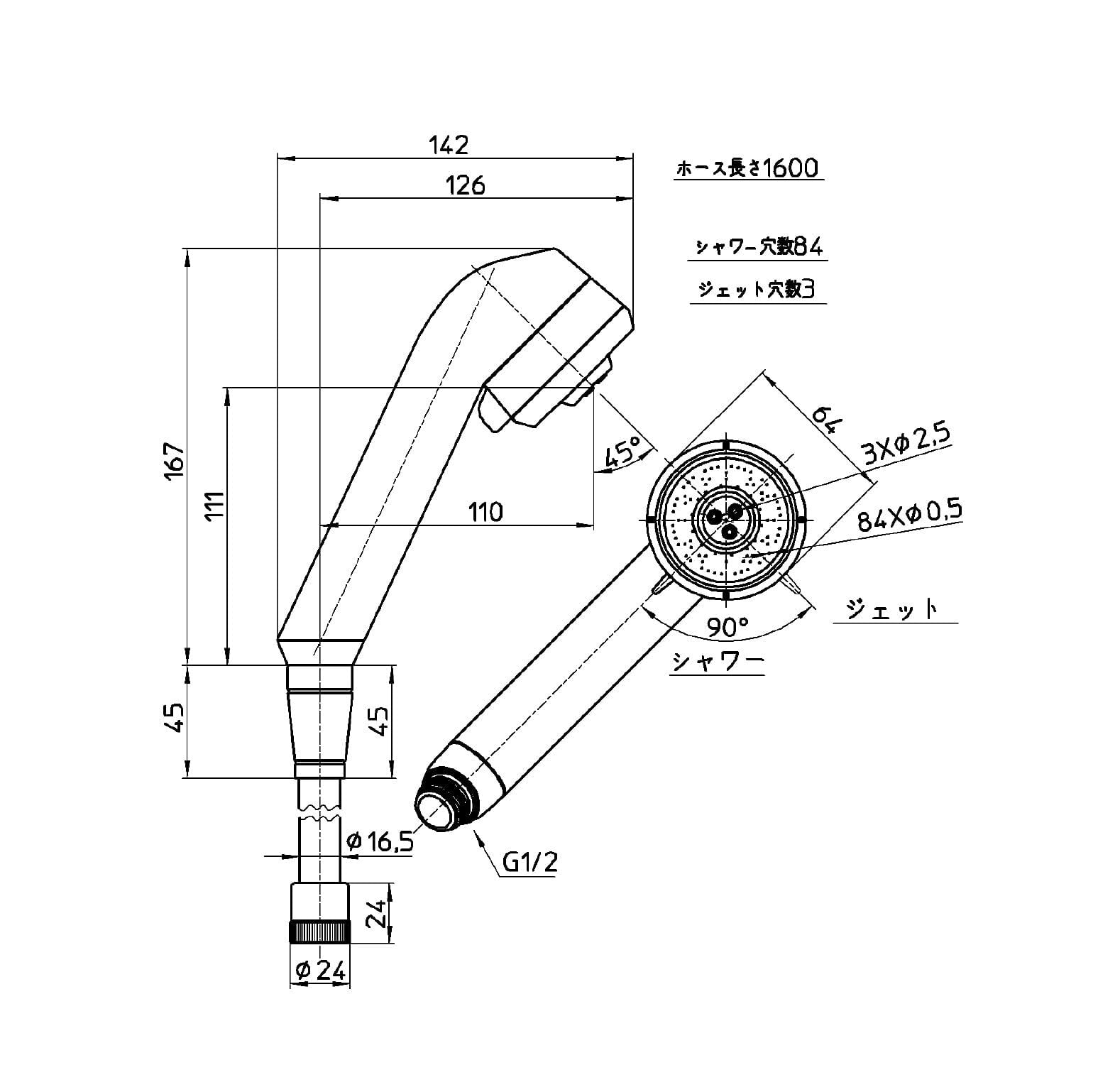 SANEI(サンエイ) シャワーヘッド・ホースセット ボディケア ジェット水流・シャワー切り替え メッキ PS3051-CTA-CC