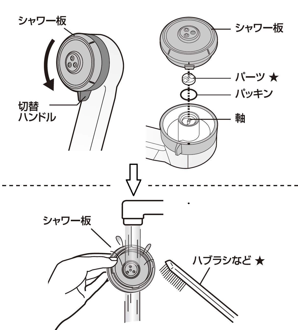 シャワー板は外してお手入れできるので、手軽にキレイが長持ちする。