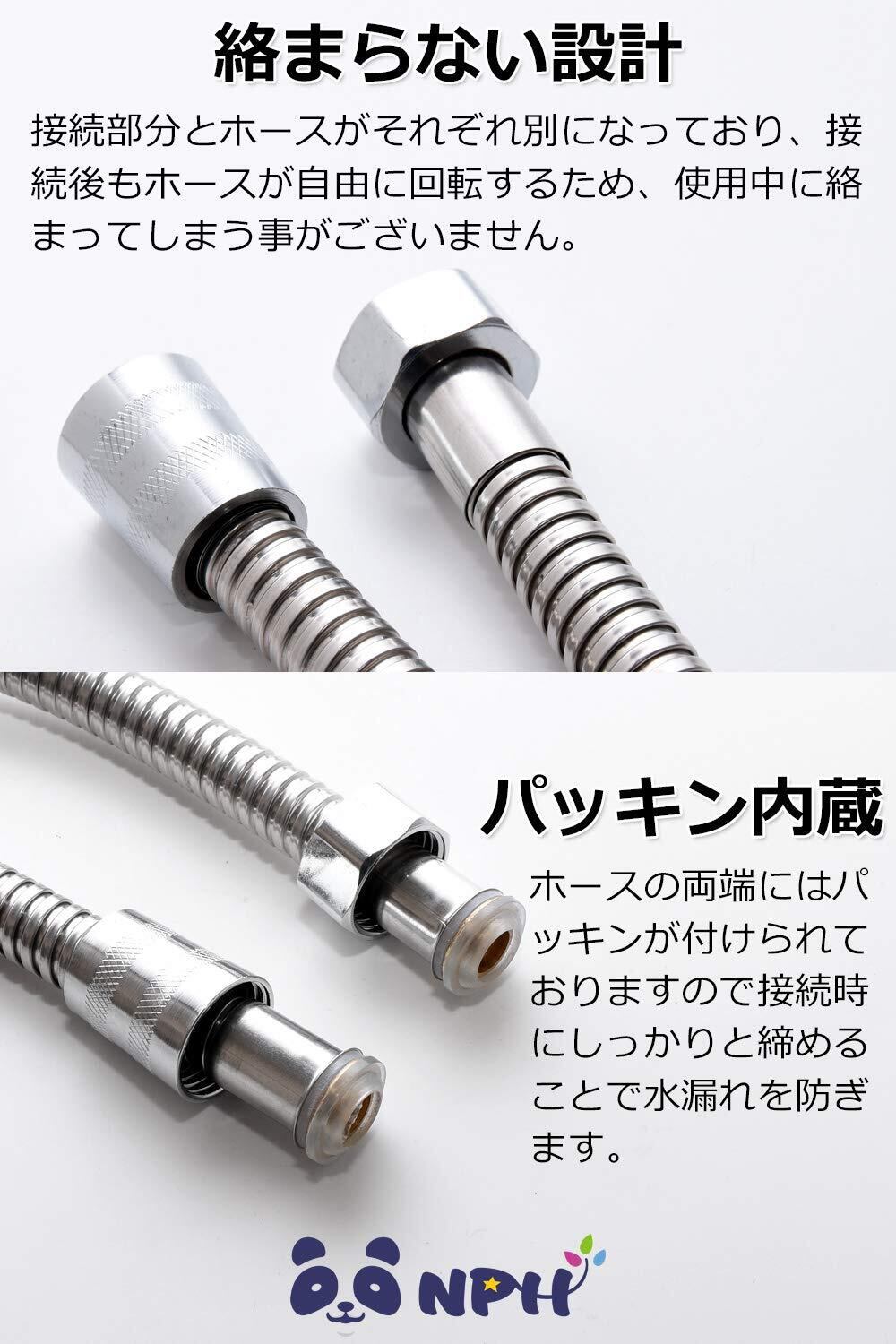 [NPH] 用シャワーホース(長さ3m) ステンレス製 360度回転 絡まり防止 用アダプター付き