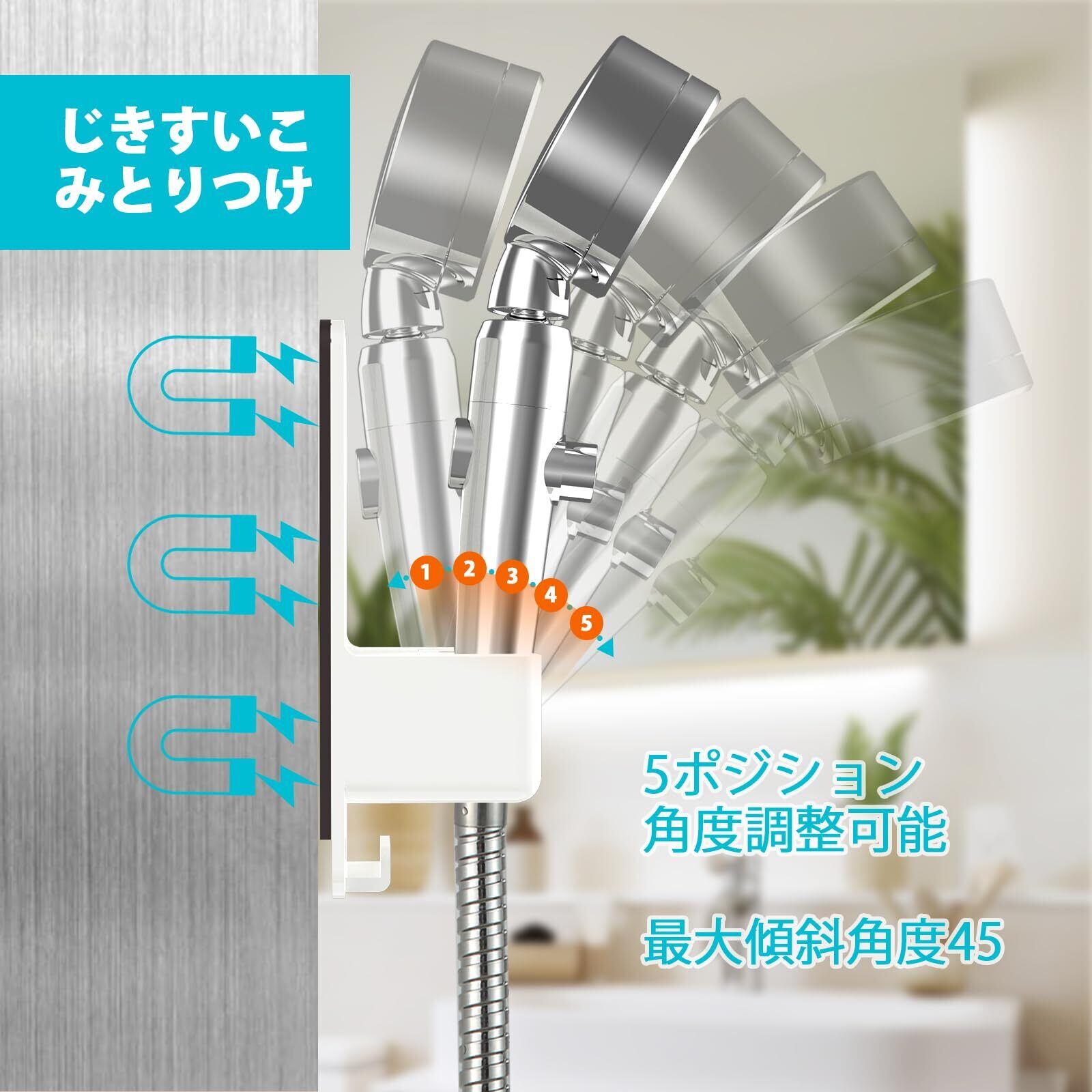 マグネティックシャワーフック - シャワーヘッドをシャワーウォールにマグネットで取り付けて、シャワーヘッドの高さを簡単に調整できます。