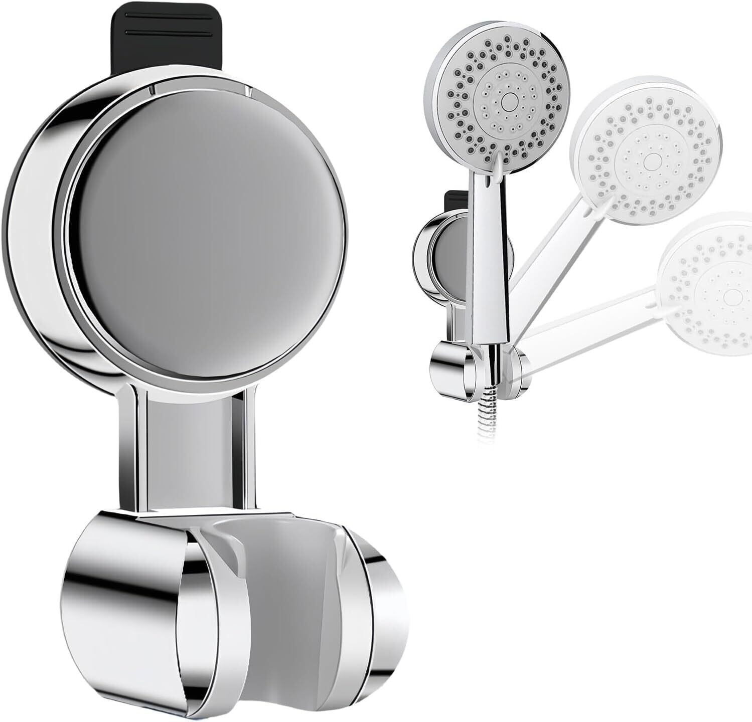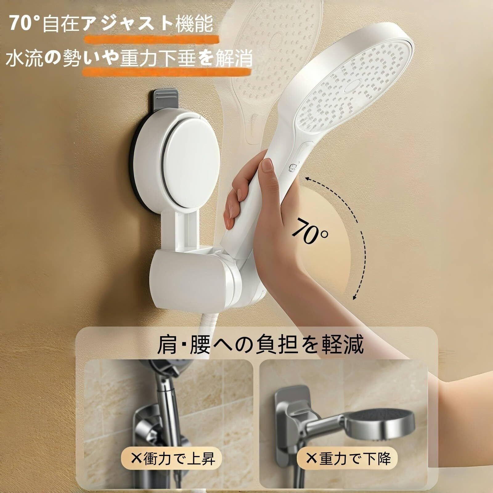 Giitoo シャワーアーム 強力吸盤式 花洒ホルダー シャワーヘッド固定スタンド 角度調整可能 壁掛け式 賃貸対応 穴あけ不要 (シルバー)