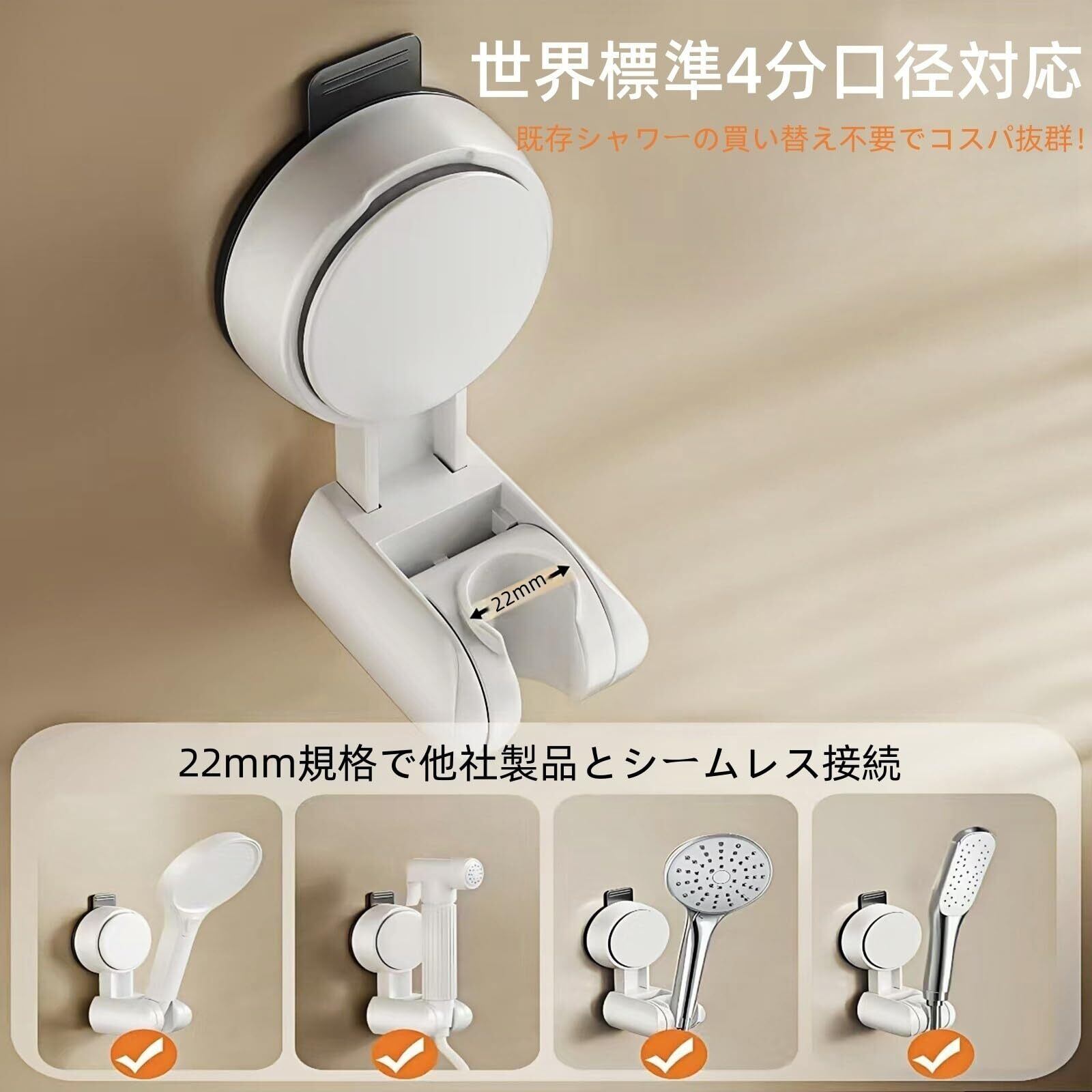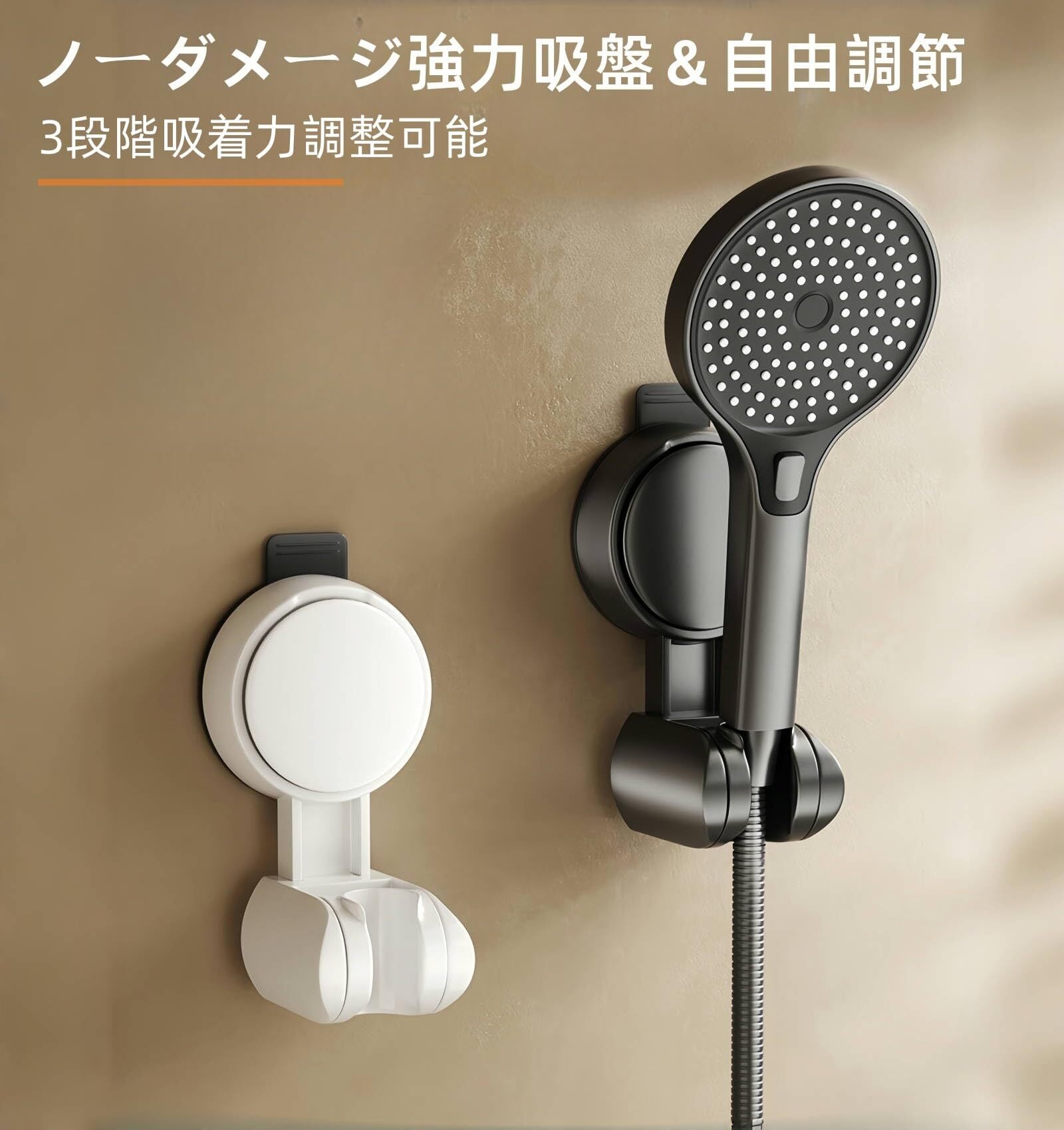【真空吸着×強力固定】 真空吸盤技術でタイル・ガラス・金属面など6種類の平滑面に密着。強力な吸着力でシャワーヘッド+花洒を安定固定。穴あけ不要・壁面無傷の賃貸住宅対応。
