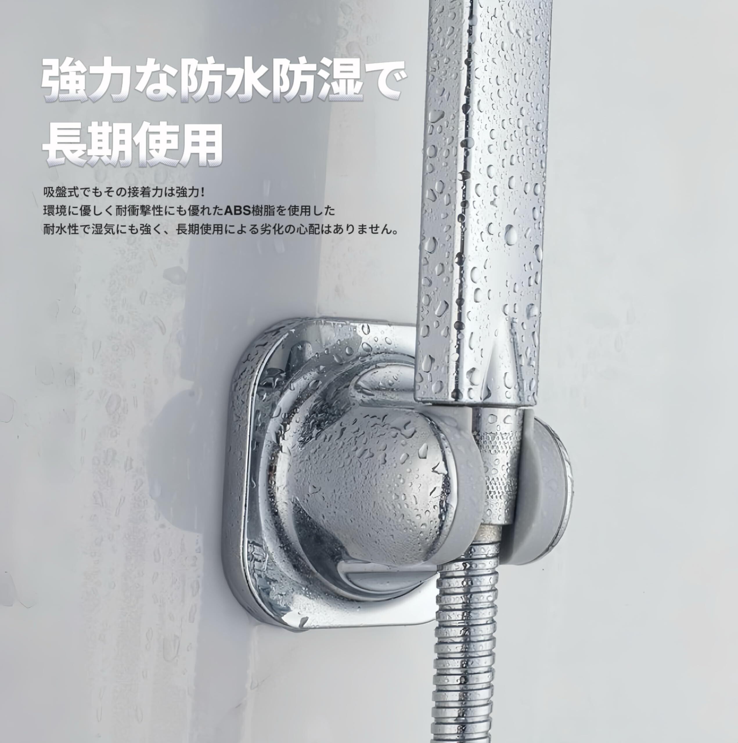 シャワーフック シャワーホルダー 角度調整可能 強力粘着式 穴あけ不要 シャワーハンガー ライドバー 壁掛け 防水 防錆 浴室用 バスルーム シャワーヘッド 吸盤フック 防水 長持ち 修理用 簡単取付
