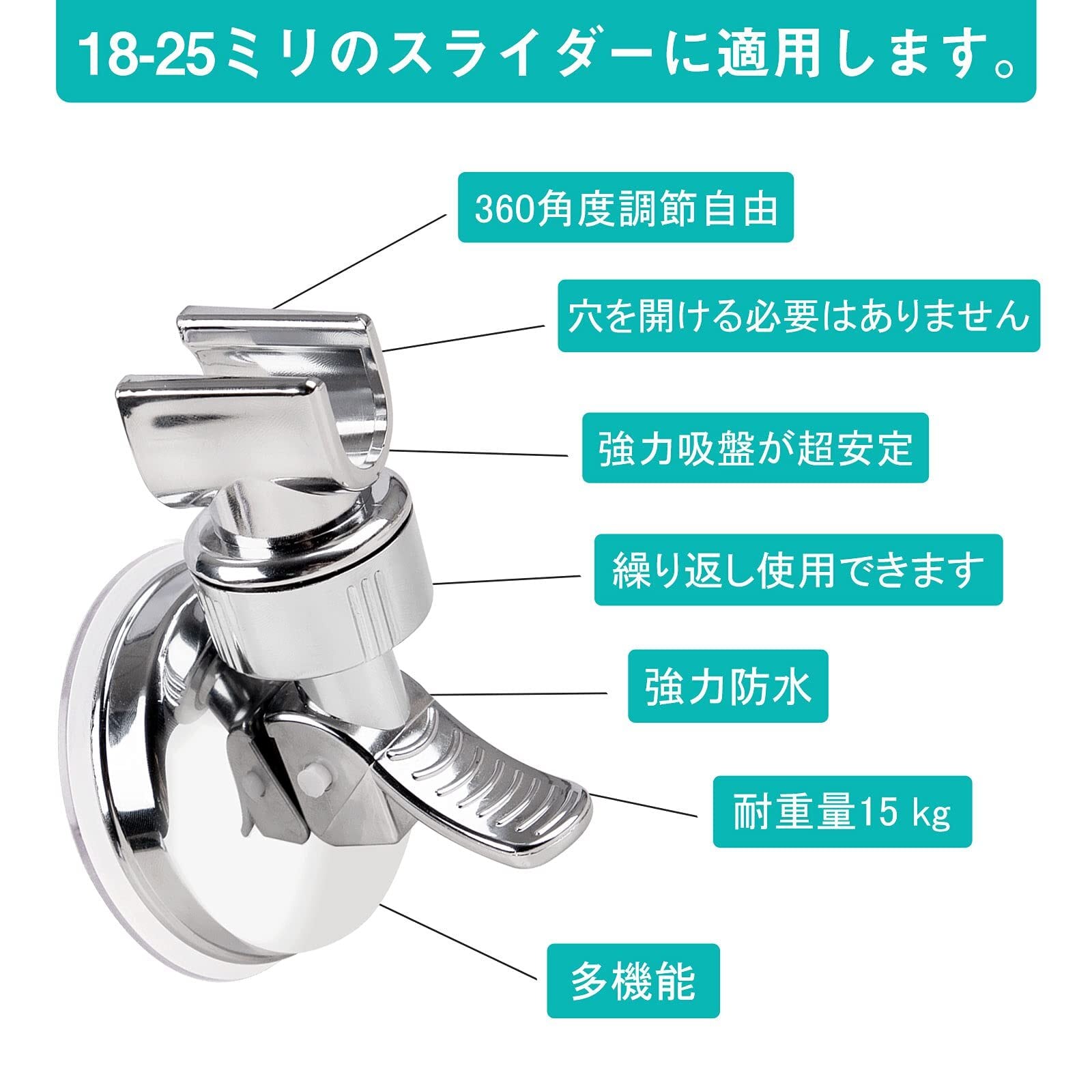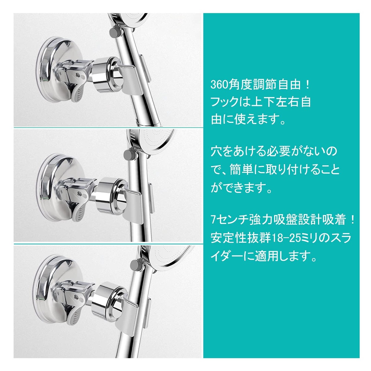 TOPOOMY シャワーフック シャワーホルダー シャワーヘッドホルダー しっかり 吸着 強力吸盤 お風呂に取付 がっちり固定 角度調整可能 汎用 穴あけ&ネジ止め不要 取り付け簡単 18-25mmスライドバーに対応 (18-25CM(A)) | KSショップ