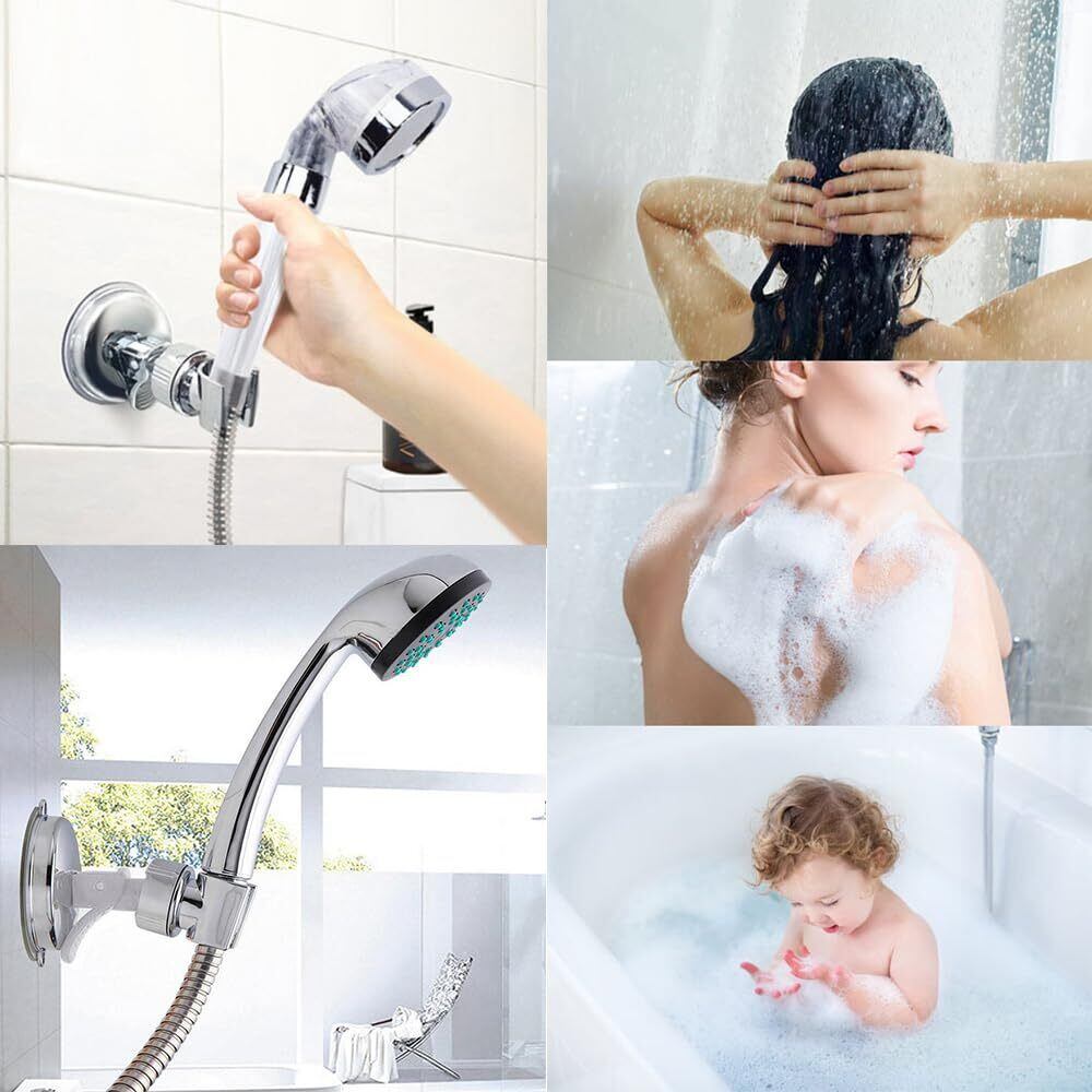 シャワーフックシャワーホルダー お風呂に取付 シャワーヘッドホルダー 吸着 強力吸盤 角度調整可能 穴あけ&ネジ止め不要 汎用 取り付け簡単