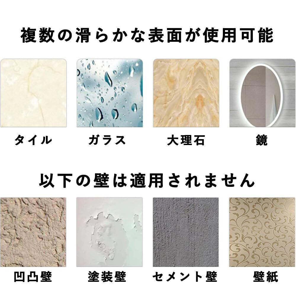 【幅広い用途】吸盤ブラケットは、セラミックタイル、ガラス、大理石、滑らかな金属表面などの滑らかな表面に適しています。賃貸マンションに住んでいる人や壁に穴を開けたくない人に向いています。