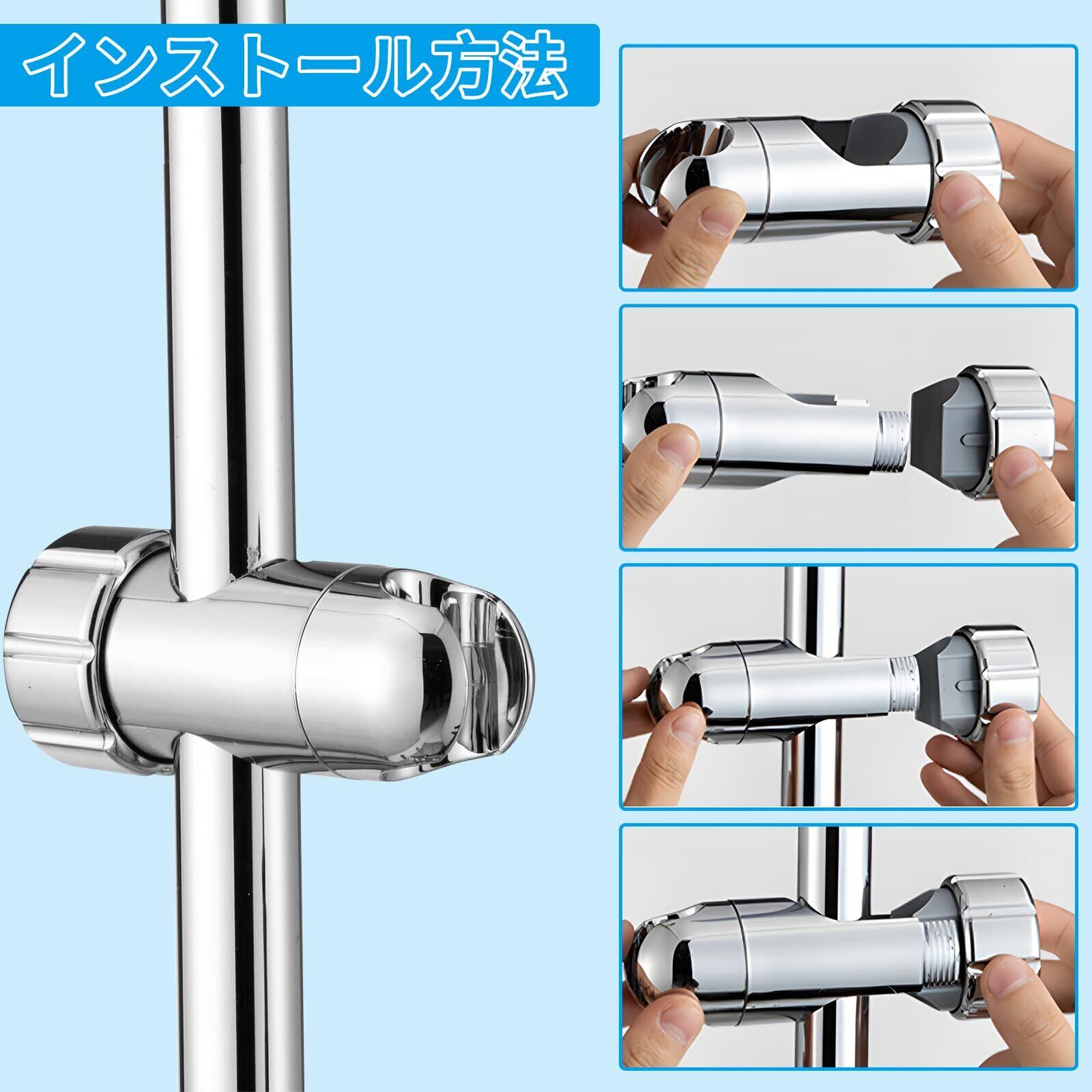 シャワーフック 修理用 360°自由回転 角度調整 移動でき シャワーホルダー スライドバー用 シャワーヘッドホルダー 取り付け簡単 工具不要 28-32mmスライダー対応