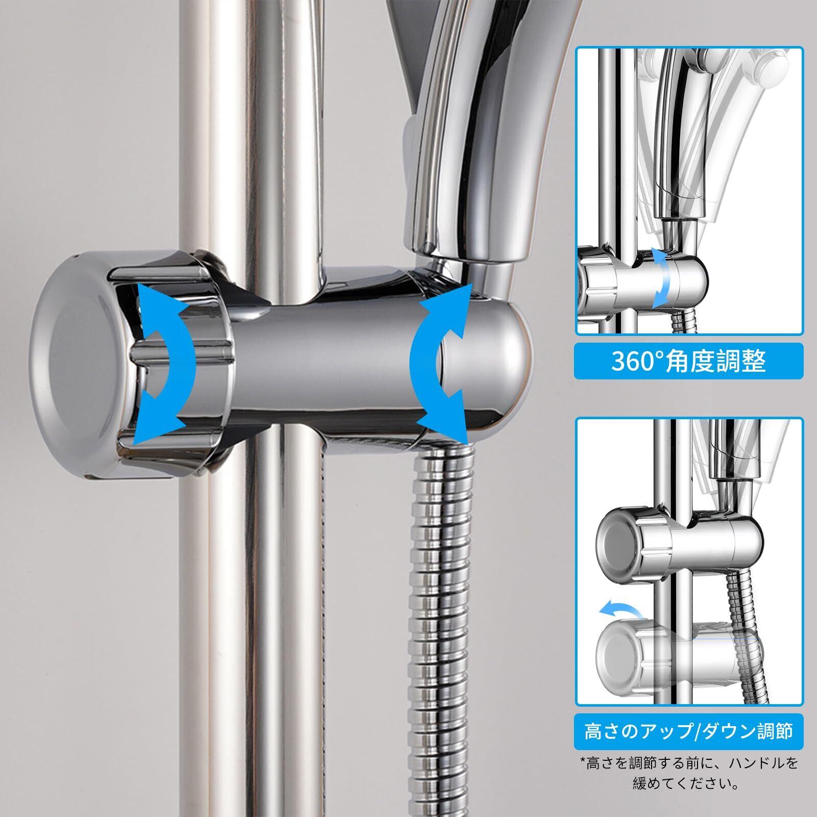 【角度調整可能】ブラケット部分は360度で上下に移動できます。 シャワーの方向はいつでもどこでも調整できます。