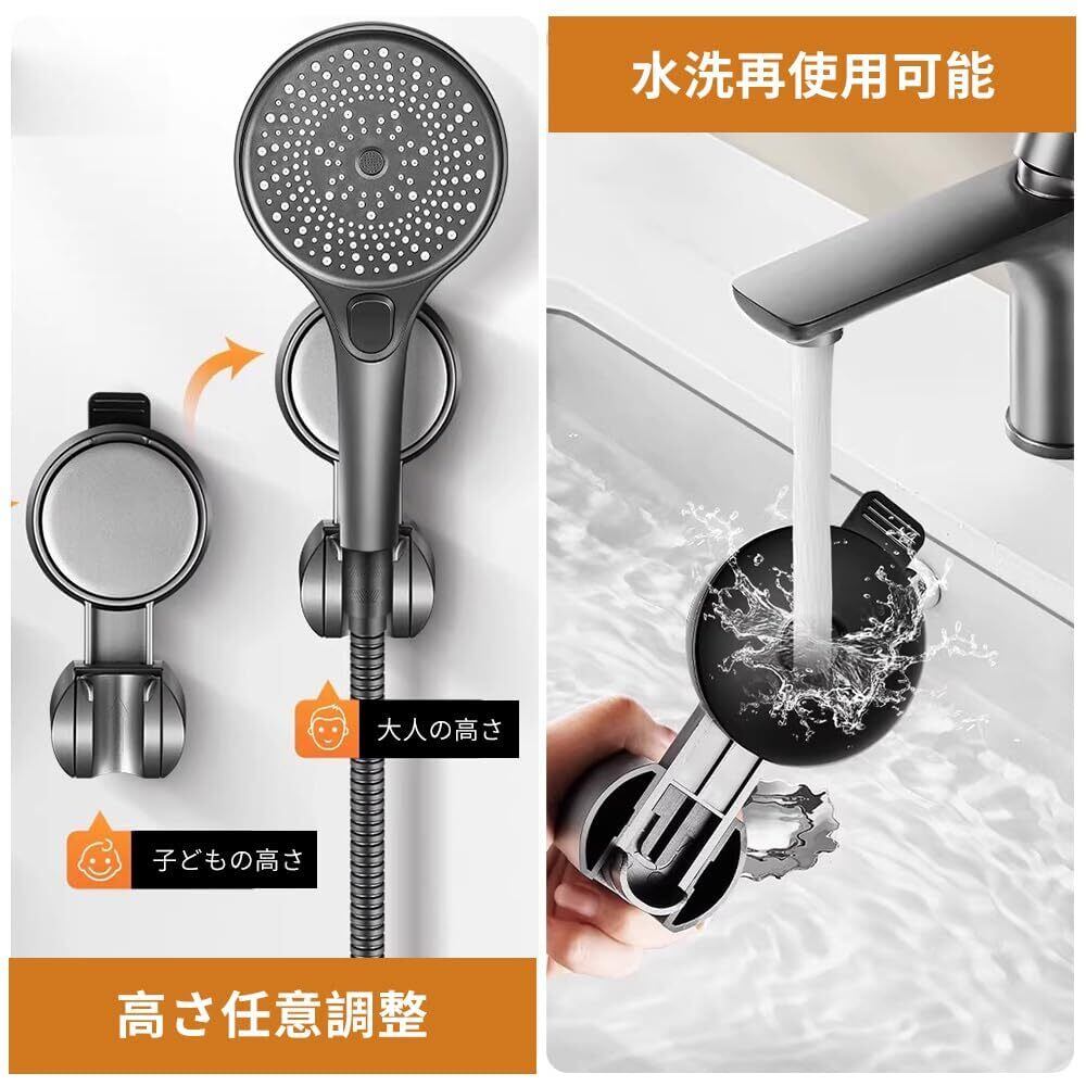 シャワーフック シャワーホルダー 強力真空吸盤 穴あけ不要 取り外し可能 高さ 角度調整可能 壁取り付け 吸盤フック 取付簡単 繰り返し使用可能 耐水性 耐湿性 汎用 浴室用 ペット 大人 子供用