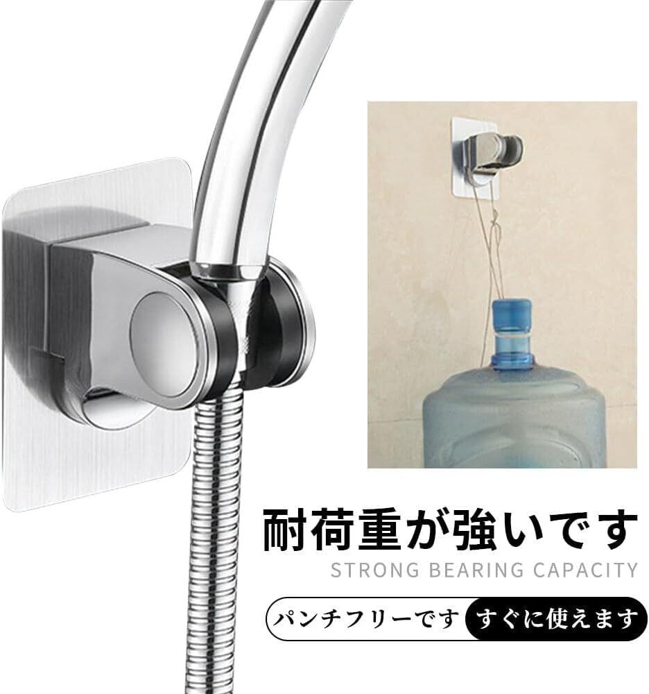 シャワーヘッドブラケットベース、最新のスタイル 強力接着シャワーフック 穴あけ不要 角度調整可能 壁取り付け不要 ネジなし 耐久性 防水 防錆 浴室シャワーヘッド 吸引カップフック 取り付け簡単 修理