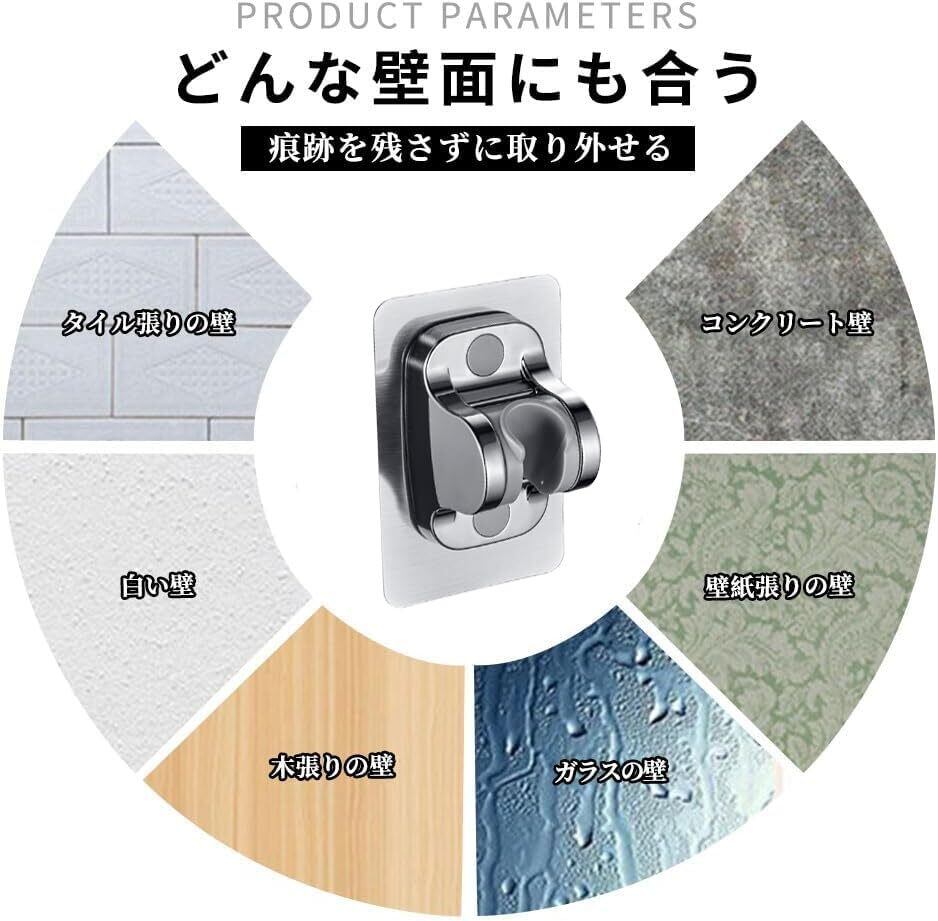 5、[白い壁、大理石の壁、木製の壁、ガラスの壁、壁紙の壁、タイルの壁など]。ドリルなしシャワーフックは、タイル、ガラス、大理石などの様々な壁材に適しており、角度と高さが調節可能で、さまざまなニーズを満たすことができます。しかし、凹凸のある表面には適していません。