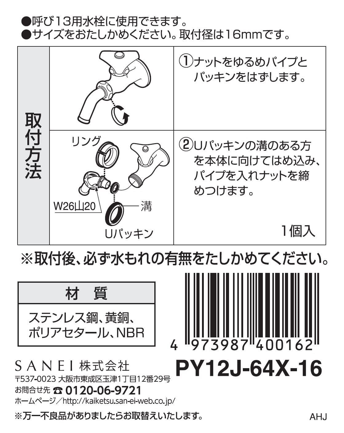SANEI(サンエイ) 万能ホームパイプ 万能ホーム水栓補修用 W26山20 取付径16mm PY12J-64X-1