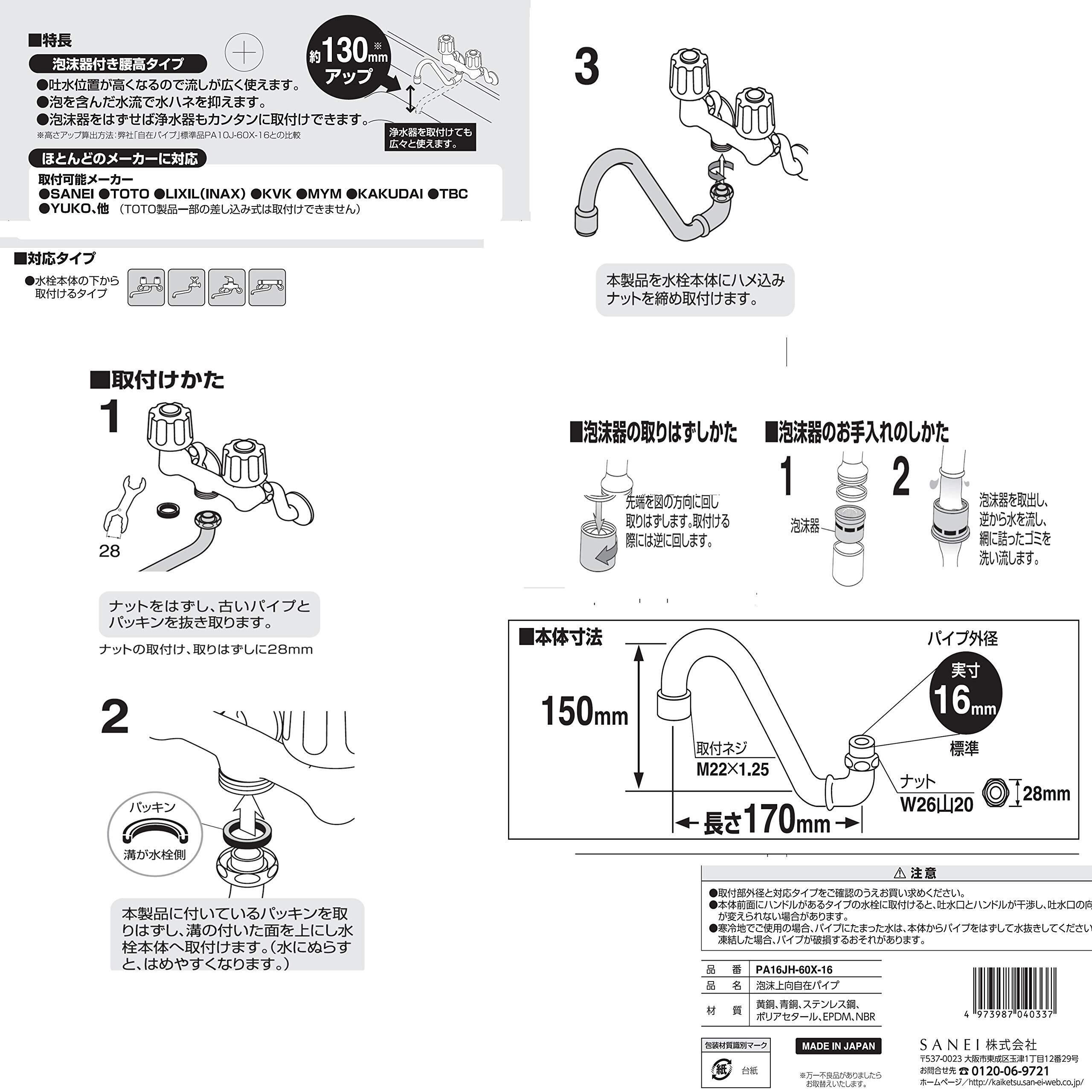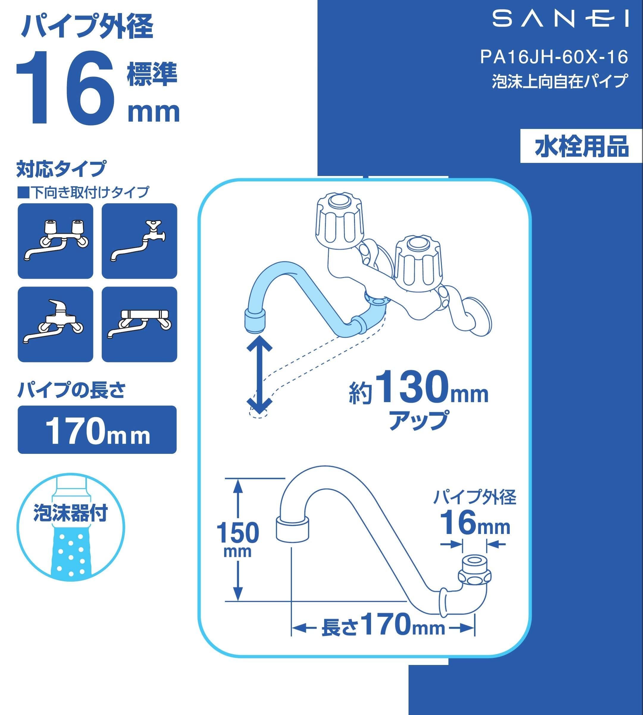 SANEI(サンエイ) 泡沫上向自在パイプ 水はね防止 高さ130mmアップ PA16JH-60X-16
