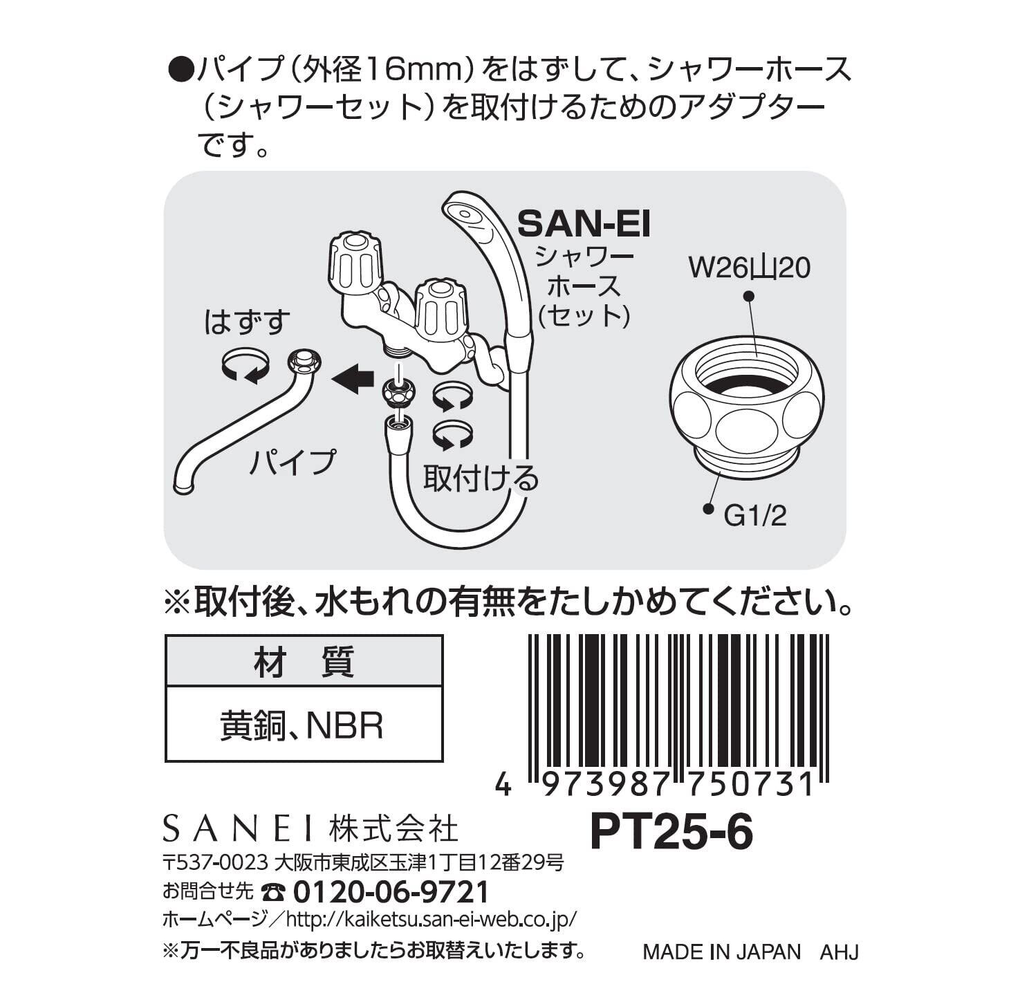 SANEI(サンエイ) シャワーアダプター 自在パイプを外し、シャワホースを接続 W26山20をG1/2に変換 PT25-6