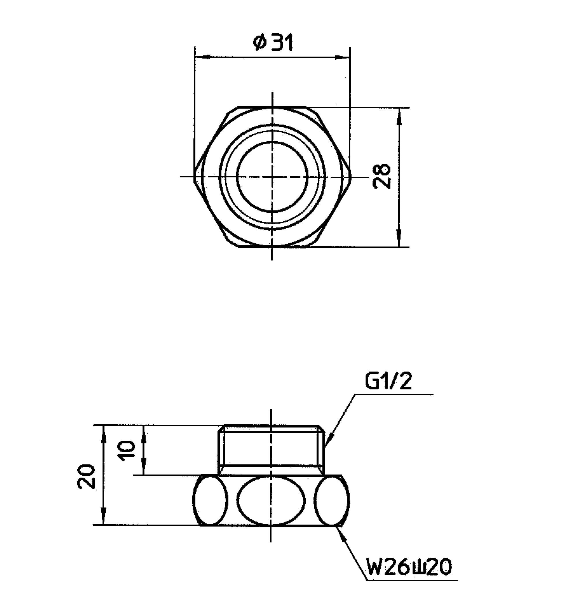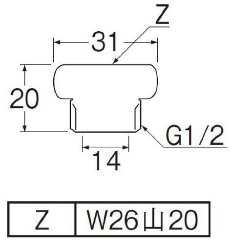 【サイズ】メネジ:W26山20 オネジ:G1/2