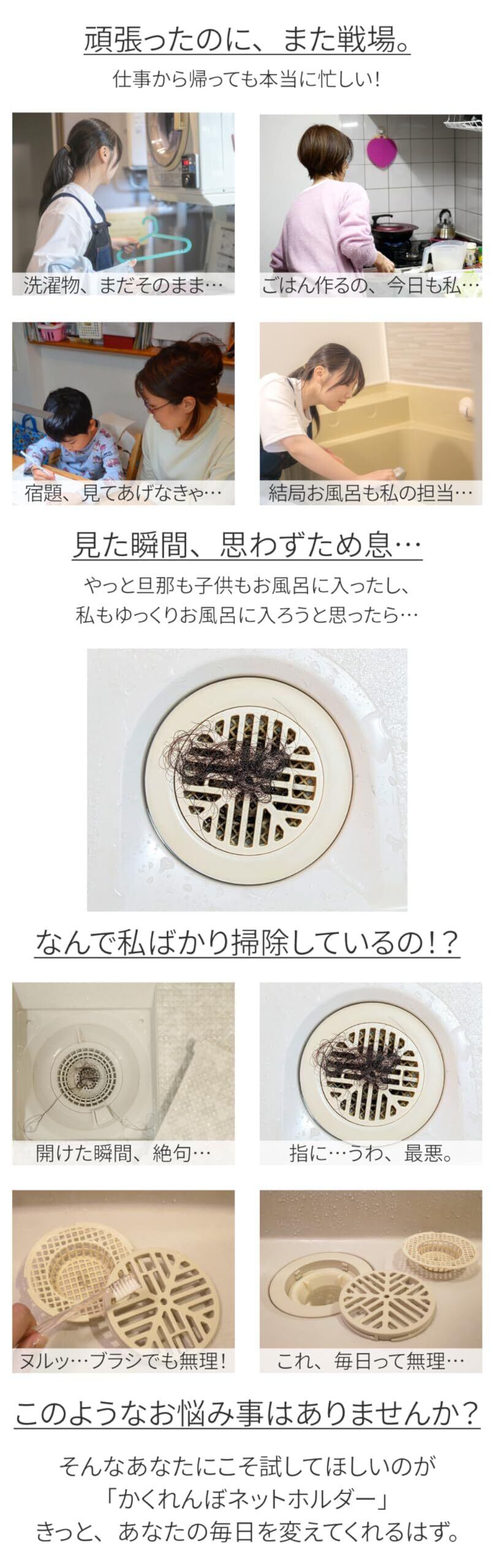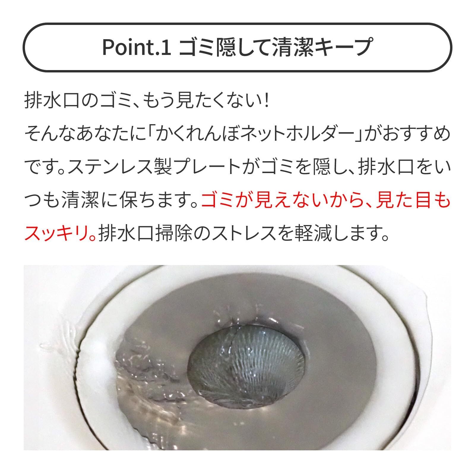 【かくれんぼネットホルダー】排水口 ゴミ隠しカバー 髪の毛スッキリ 清潔感アップ|浴室 お風呂掃除ラク 見た目キレイ 市販ネット対応 ステンレス製