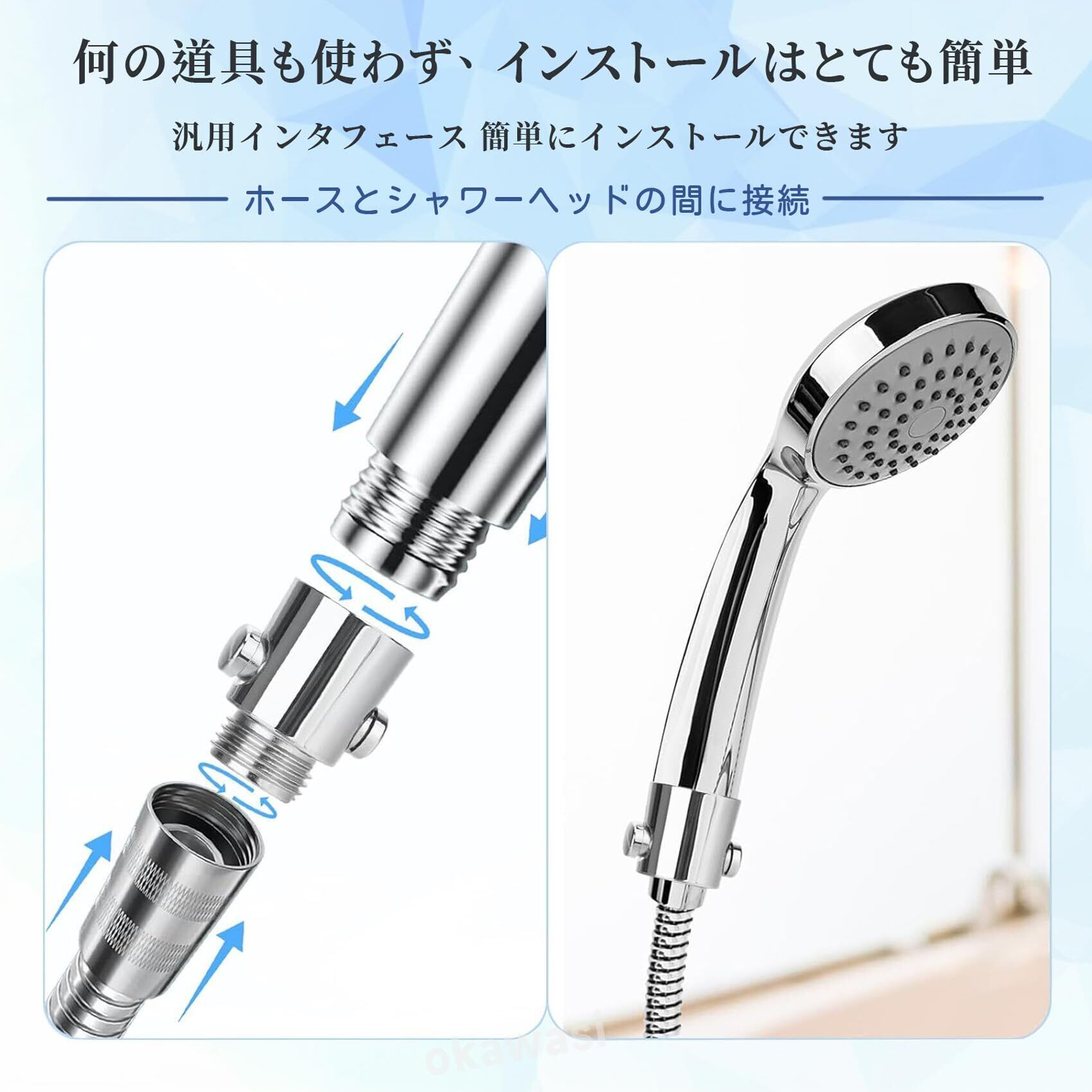 【10秒カンタン設置】ネジ締め式設計で工具不要。シャワーアームとホースの間に挟むだけで設置完了。水漏れ防止パッキン付属で初めての方でも確実に取り付け可能。