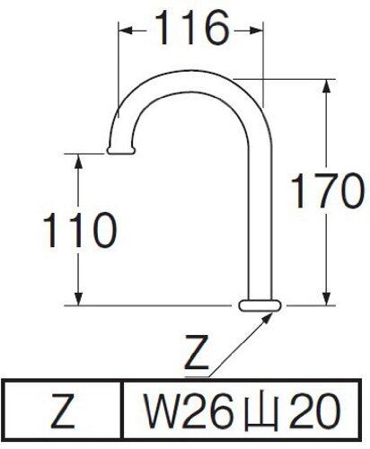 SANEI(サンエイ) 横形ツル首パイプ 上向き 高さ100mmアップ 長さ116mm PA26J-60X-16