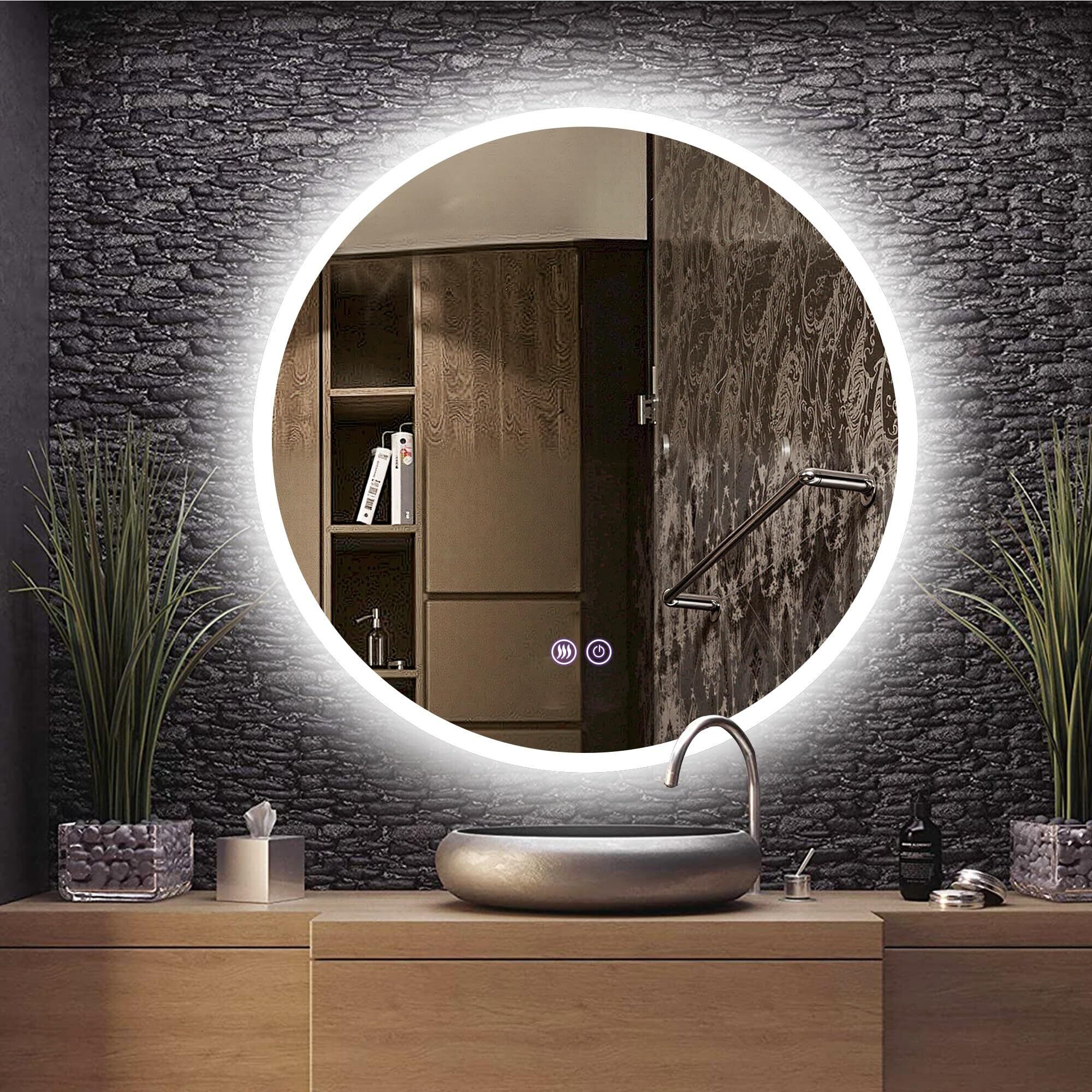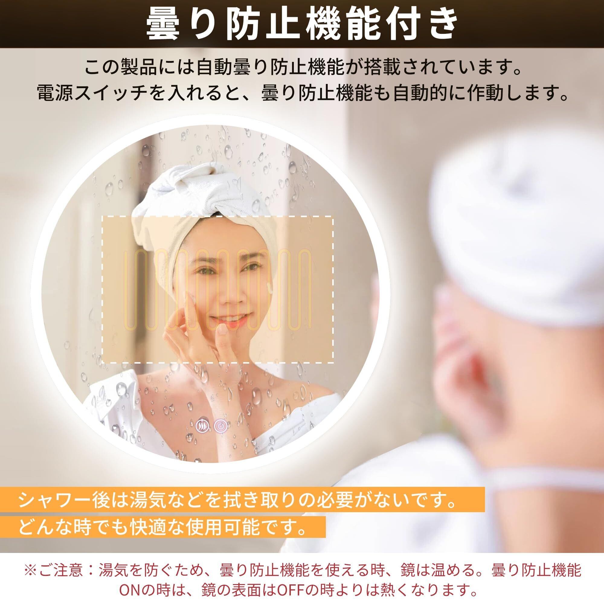 ミルオ君の鏡工房 LEDミラー 鏡 曇り止め 浴室鏡 ライト付き ウォールミラー 壁掛け 洗面台 省エネ 明るさ調整 飛散防止 ふち型 円型 丸い 60cm
