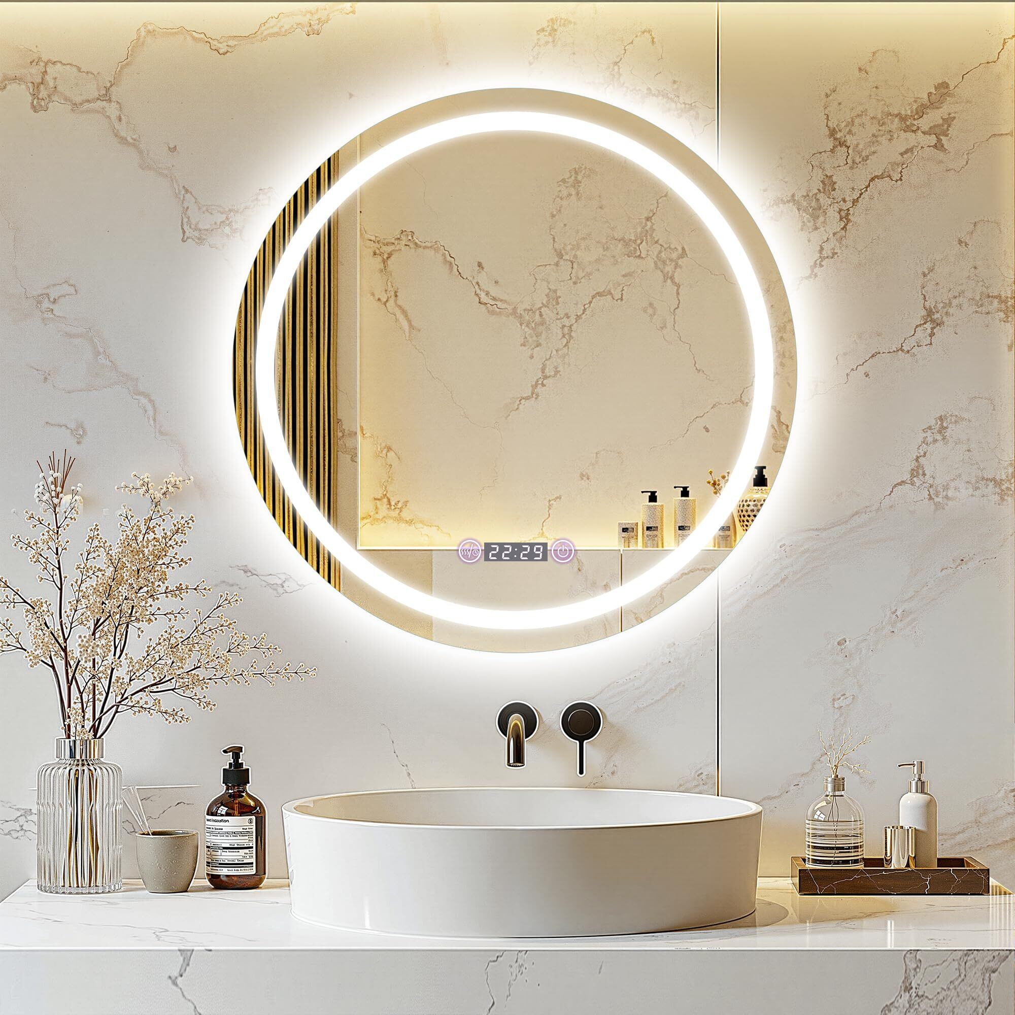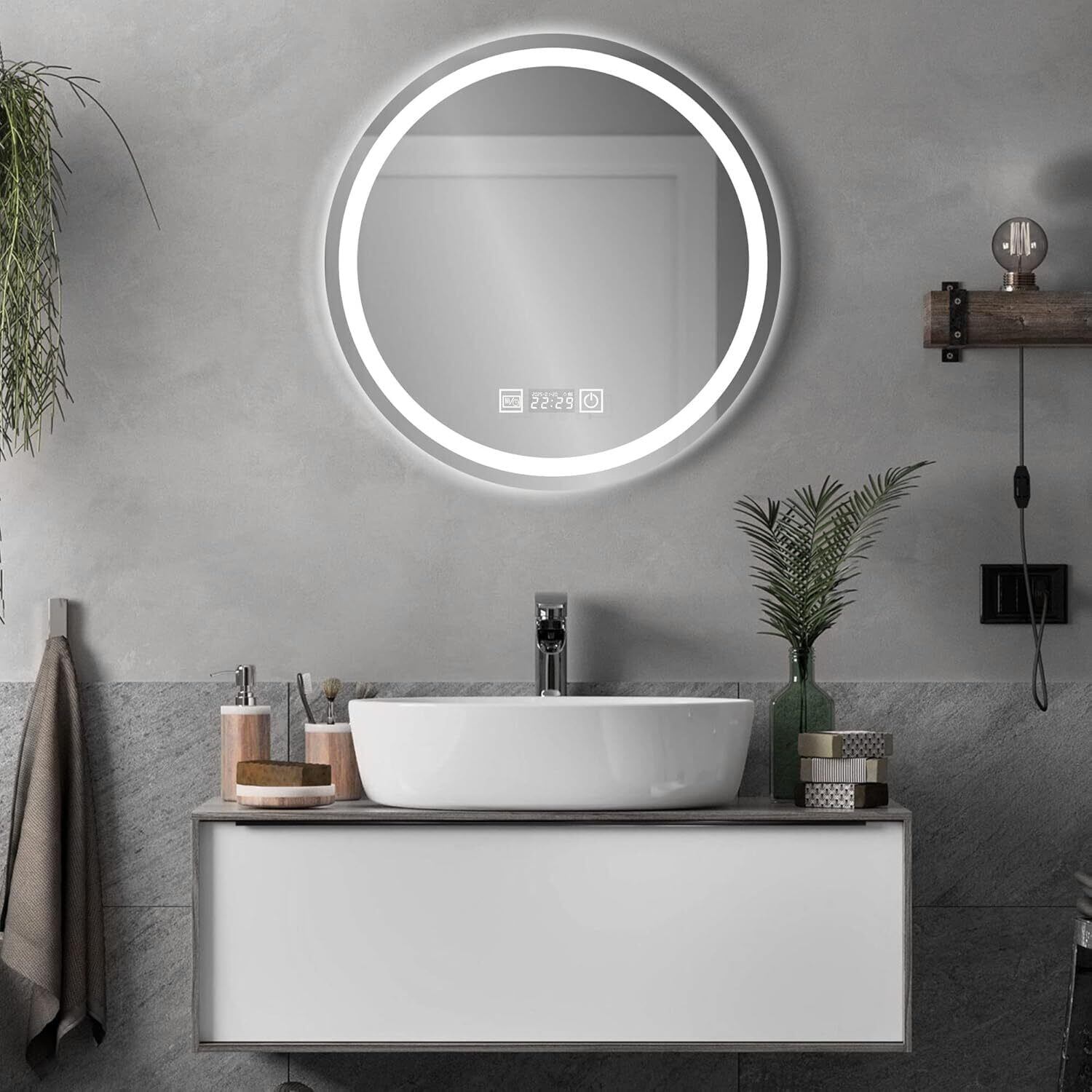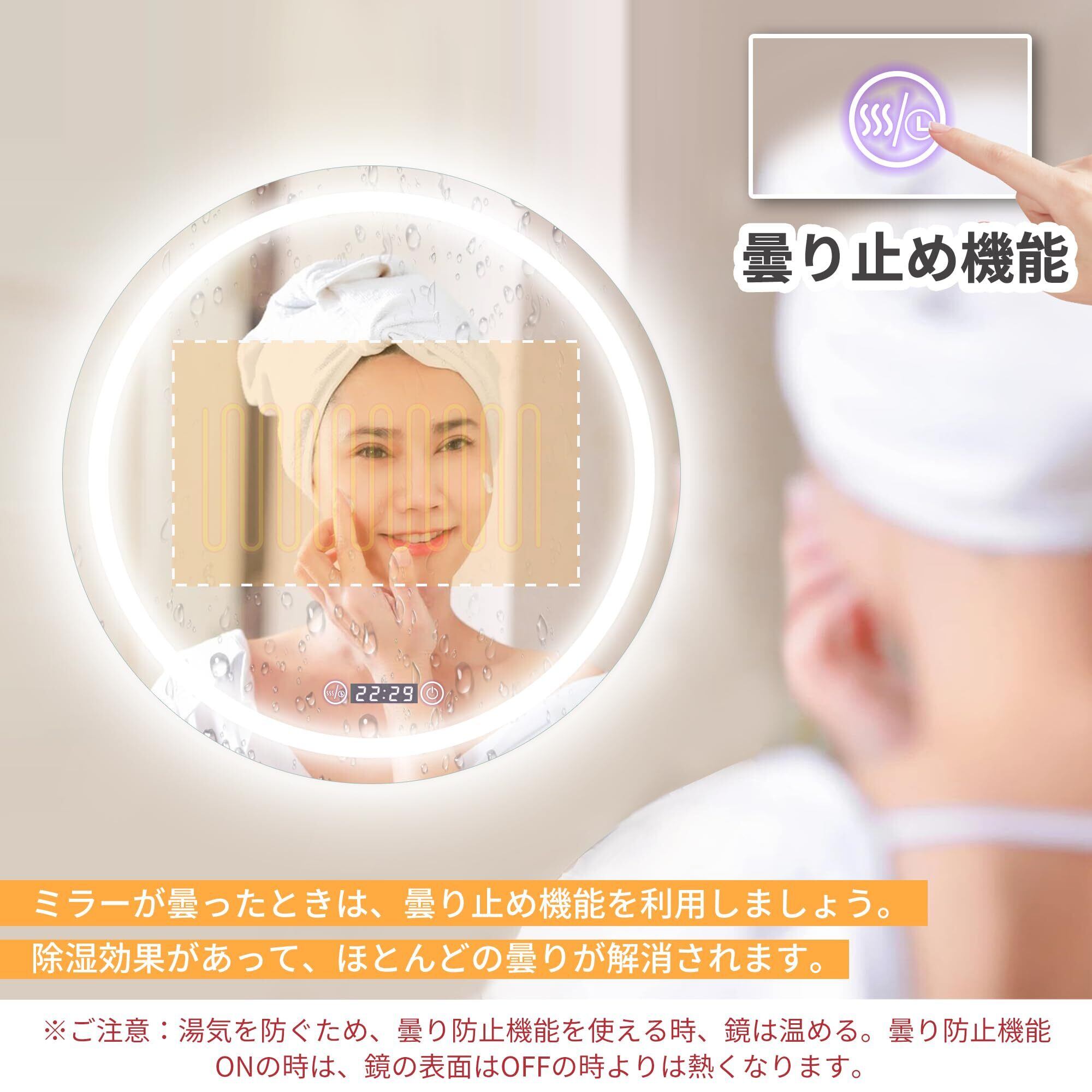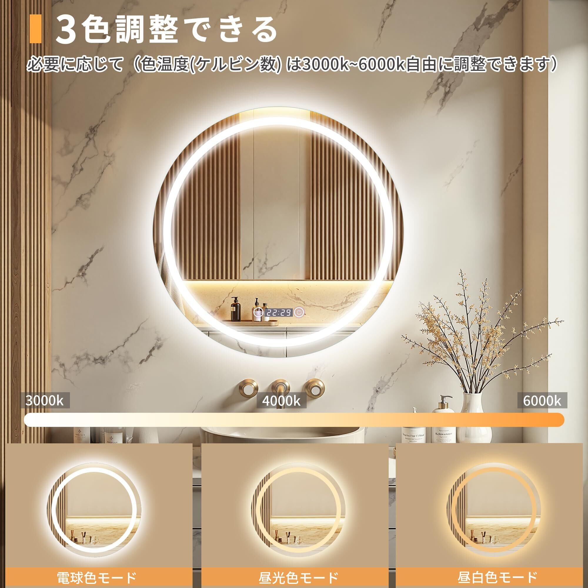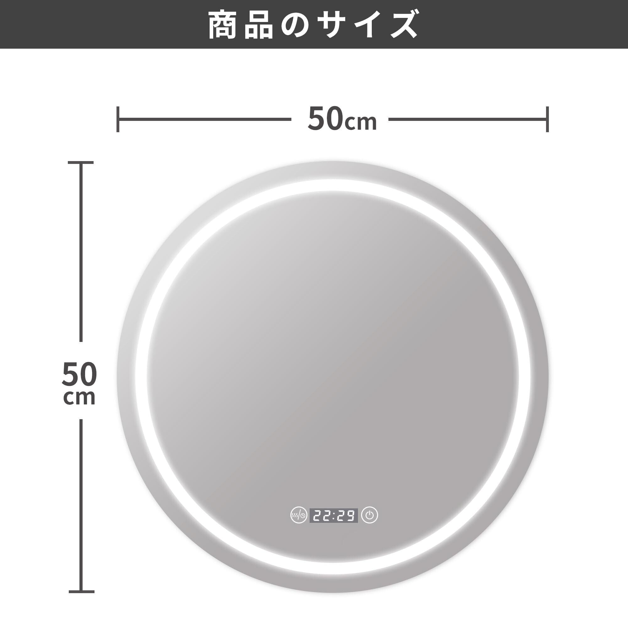 Beautimira 浴室鏡 LED 壁掛け 防水 曇り止め 照明付き LEDミラー 化粧鏡 洗面所 洗面台 浴室 バスルーム ledライト付 3色調整可能 横掛け縦掛け可能 丸型 50cm | KSショップ