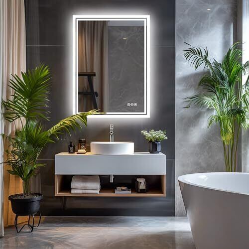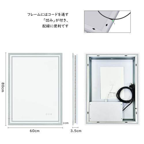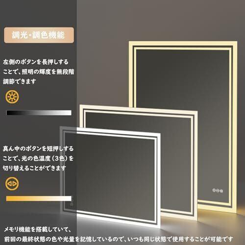 Susire 洗面所 鏡 大型 女優ミラー 壁掛け ドレッサー 大きい 化粧鏡 縦長 ledライト付き 調光 四角 おしゃれ 長方形 洗面台 トイレ お風呂鏡 曇らない フレームレス 曇り止め 飛散防止 60cm 80cm | KSショップ