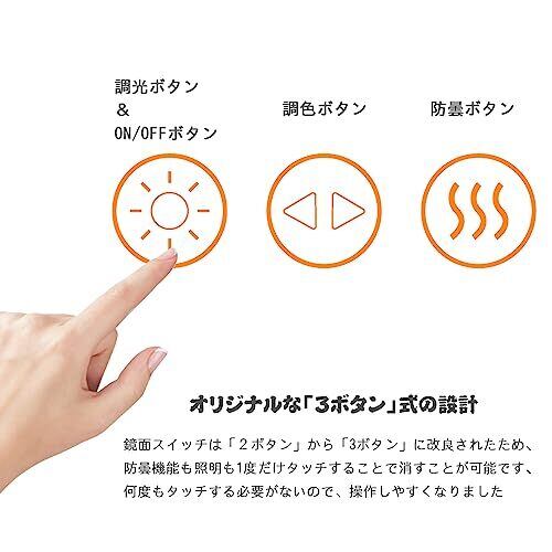 【オリジナルな3ボタン式の設計】鏡面スイッチは「2ボタン」から「3ボタン」に改良されたため、防曇機能も照明も1度だけタッチすることで消すことが可能です、何度もタッチする必要がないので、操作しやすくなりました