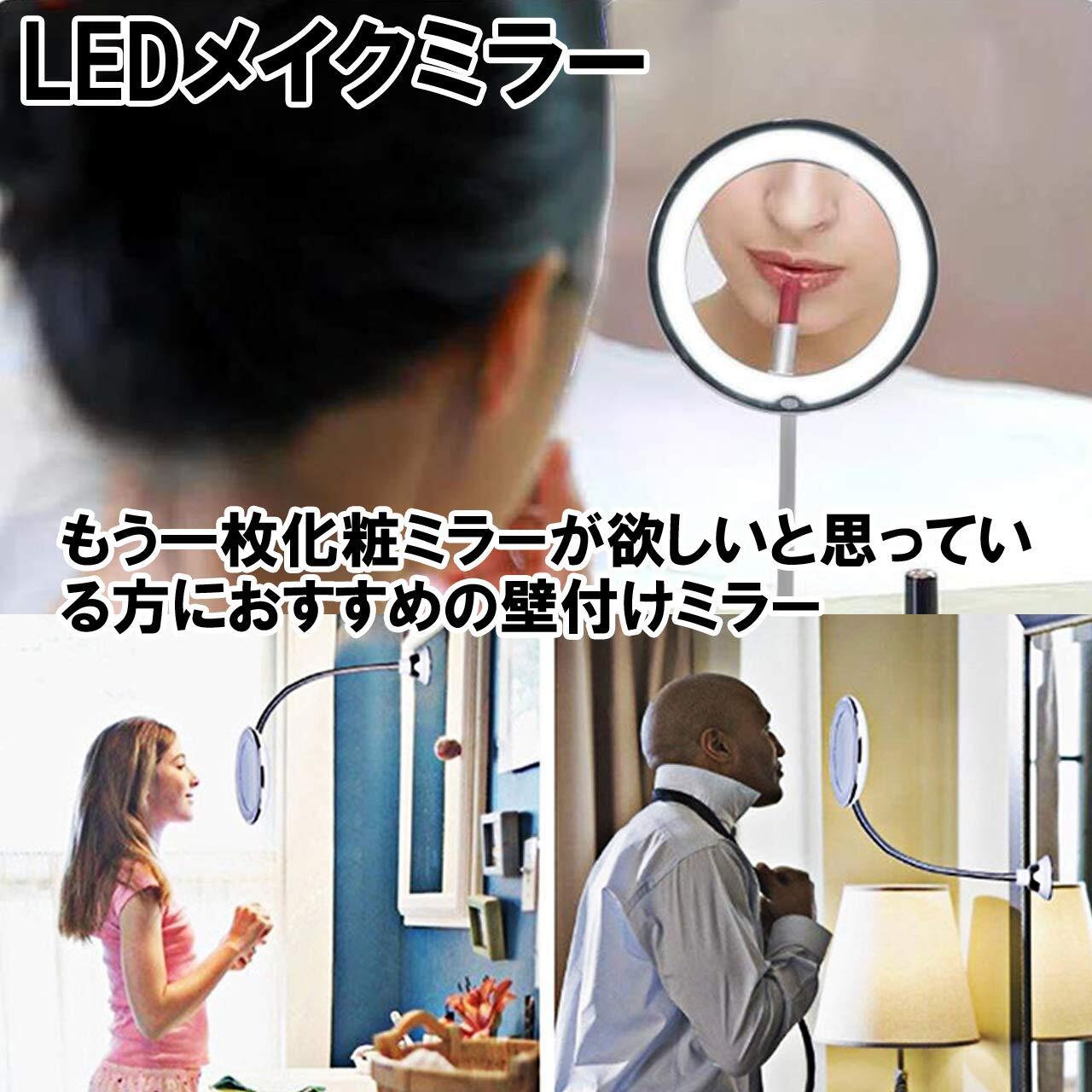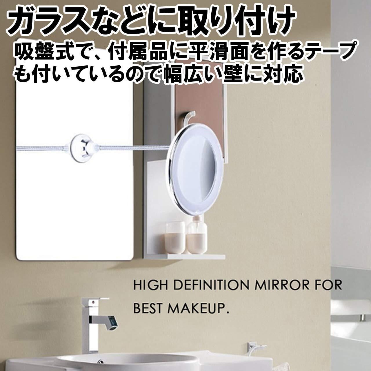 Felimoa メイクミラー 10倍 化粧鏡 拡大鏡 LED 回転 フレキシブルアーム 壁付けミラー