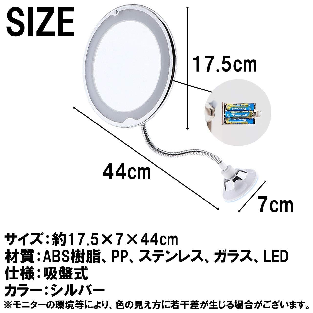 サイズ:約17.5×7×44cm 材質:ABS樹脂、PP、ステンレス、ガラス、LED 仕様:吸盤式 カラー:シルバー ※モニターの環境により、色の見え方に若干差が生じる場合があります。