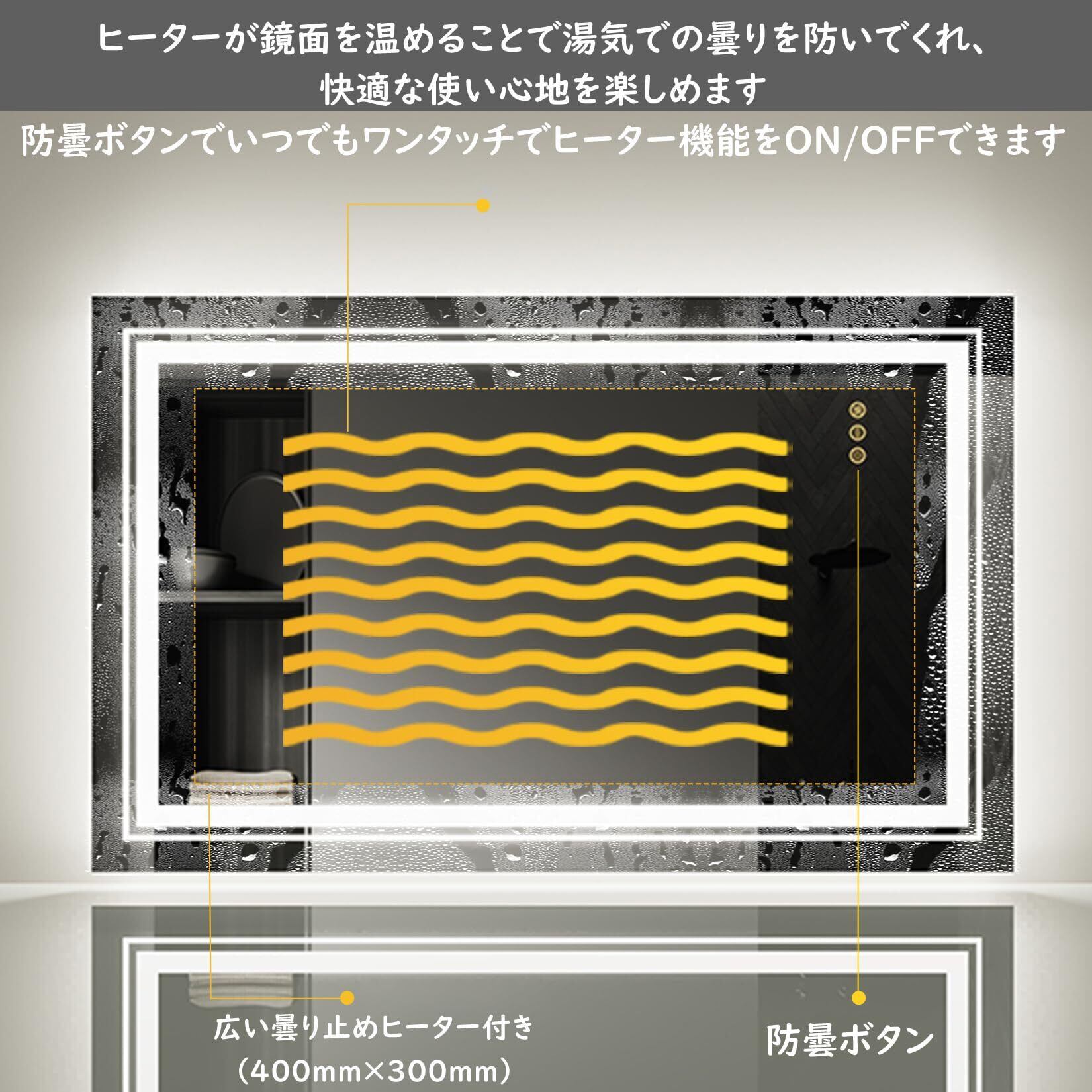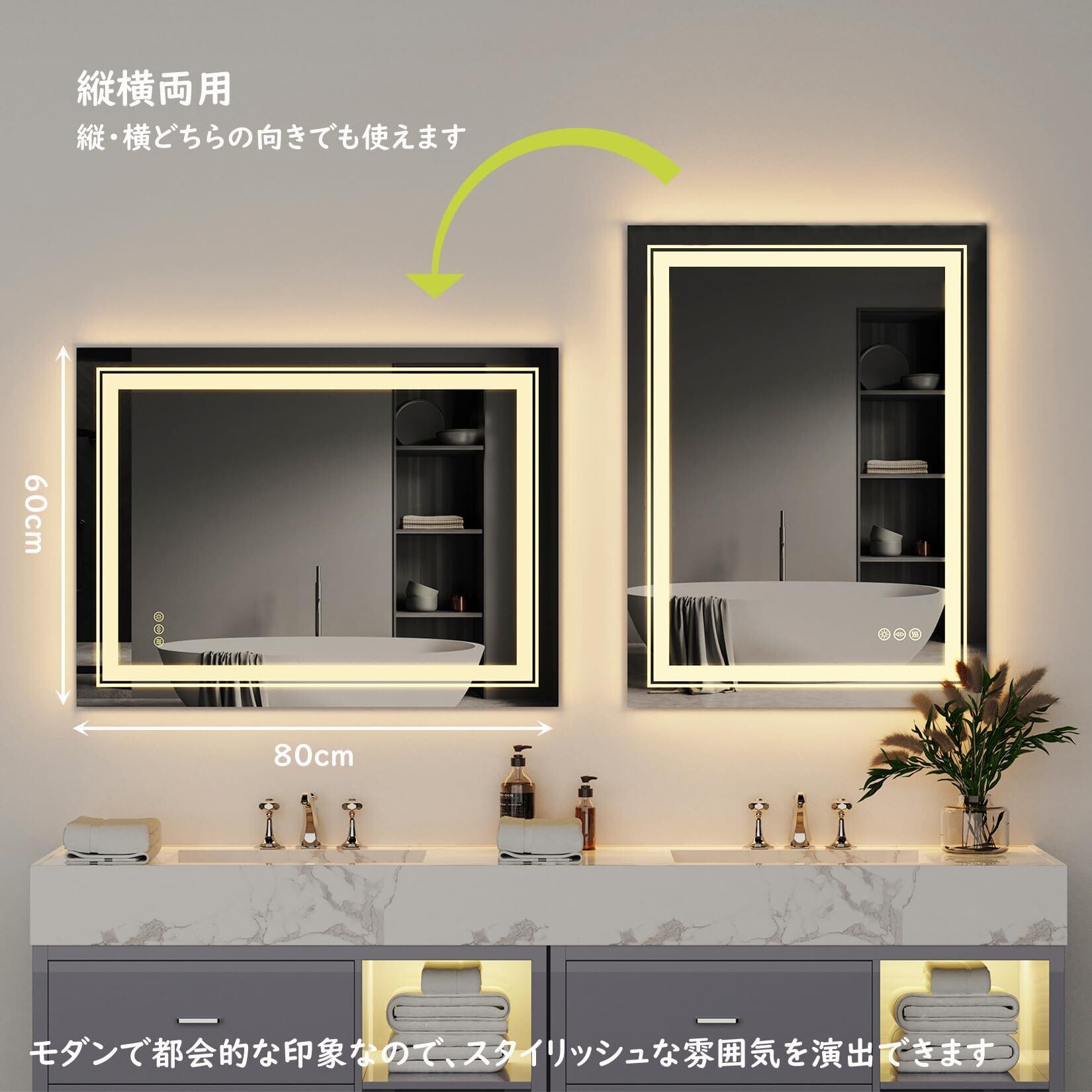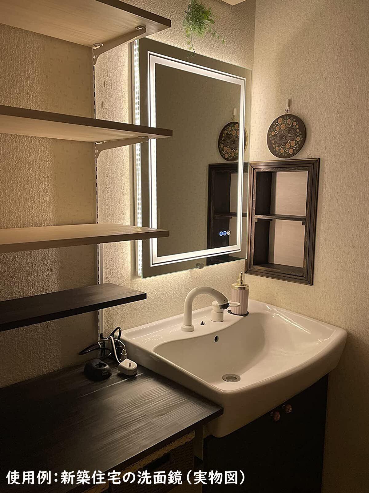 Susire 壁掛け鏡 洗面鏡 ライト付き 女優ミラー 大きい led 曇らない ウォールミラー 洗面台鏡 曇り止め バスルーム くもらない 洗面所 脱衣所 トイレ おしゃれ 四角 浴室化粧鏡 お風呂