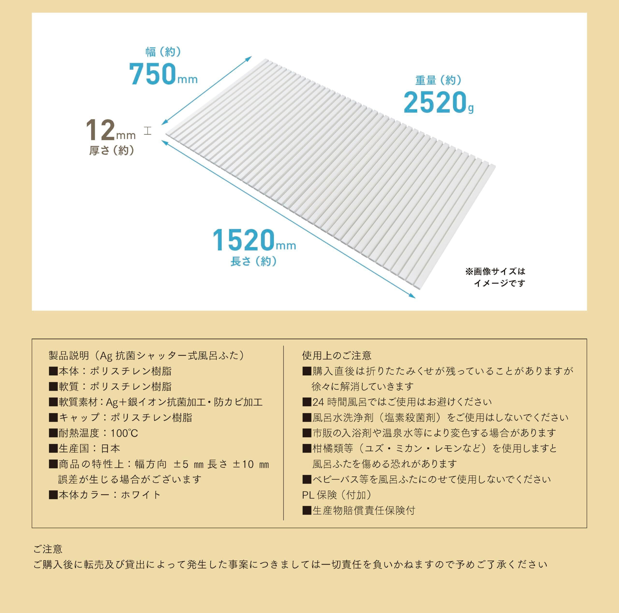 Belca(ベルカ) 日本製 風呂ふた Ag+銀イオン くるくる巻ける シャッター式 風呂ふた 幅75×長さ152cm ホワイト 軽量 抗菌 防カビ加工 MS-SL15-W