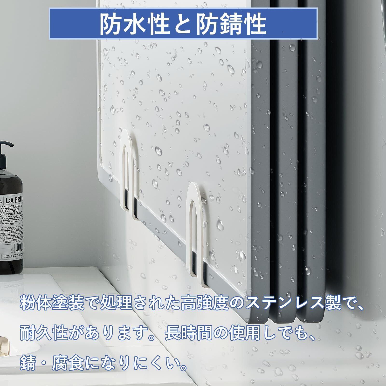 【防錆・防水】粉体塗装で処理された高強度のステンレスで、錆びに強く、変形しにくいです。風呂ふたを壁に掛けることで、スペースを節約することができます。