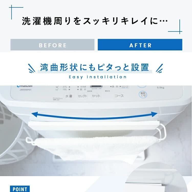 マグネットタイプの取り付け方法で、しっかり固定、位置変更自在。背面のラバーマグネット取り付け部材にたわみを持たせて、縦型洗濯機前面部の湾曲形状に対応。