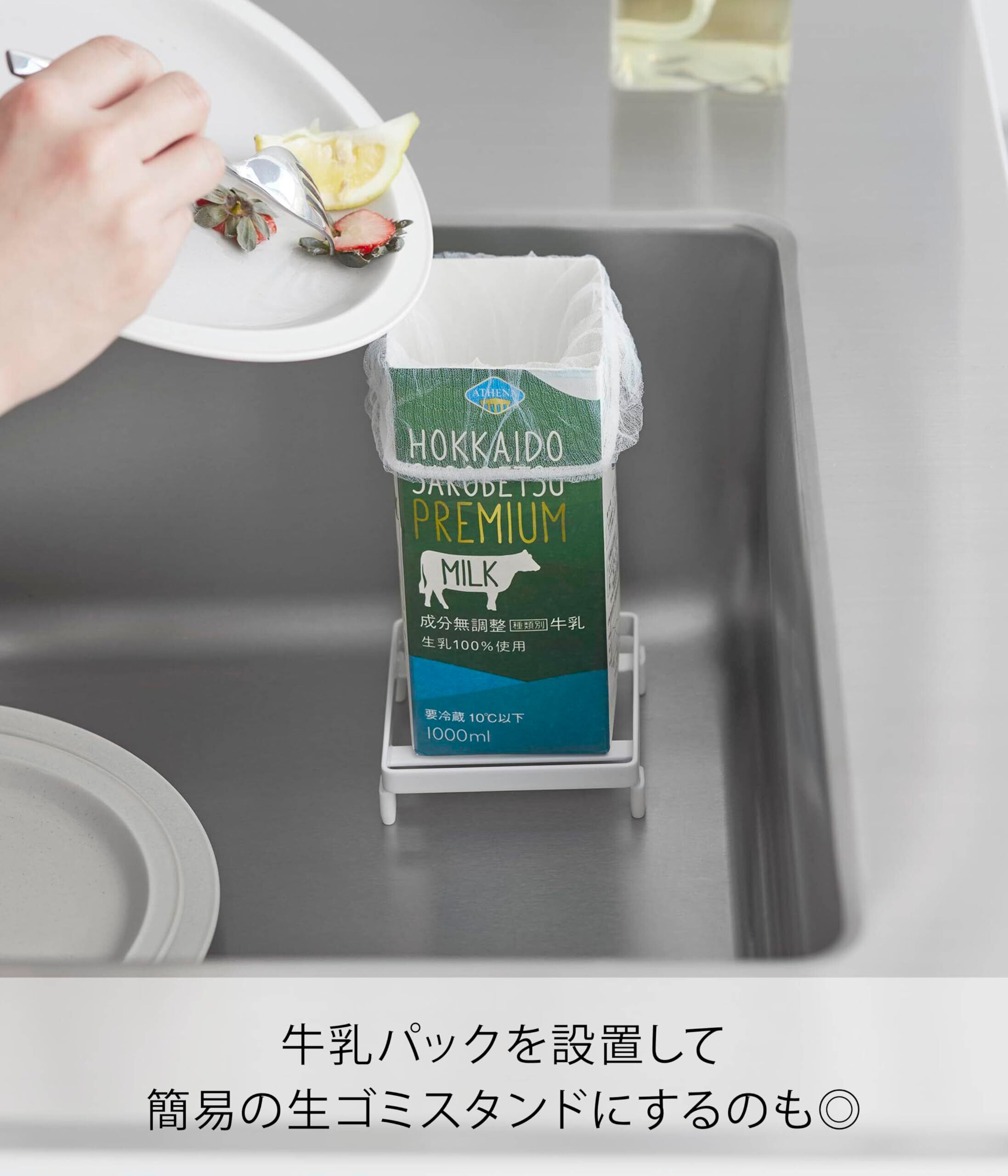 牛乳パックを設置して、簡易の生ゴミスタンドとしても。
