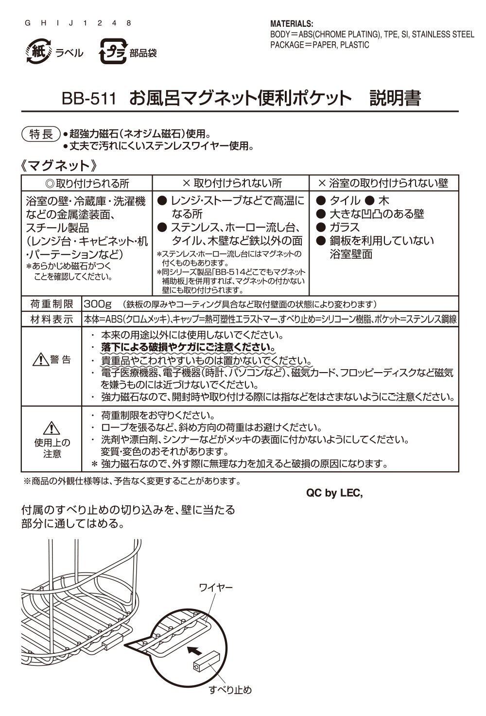 レック お風呂の壁に マグネット 便利ポケット ( 強力磁石 ) ステンレス BB-511