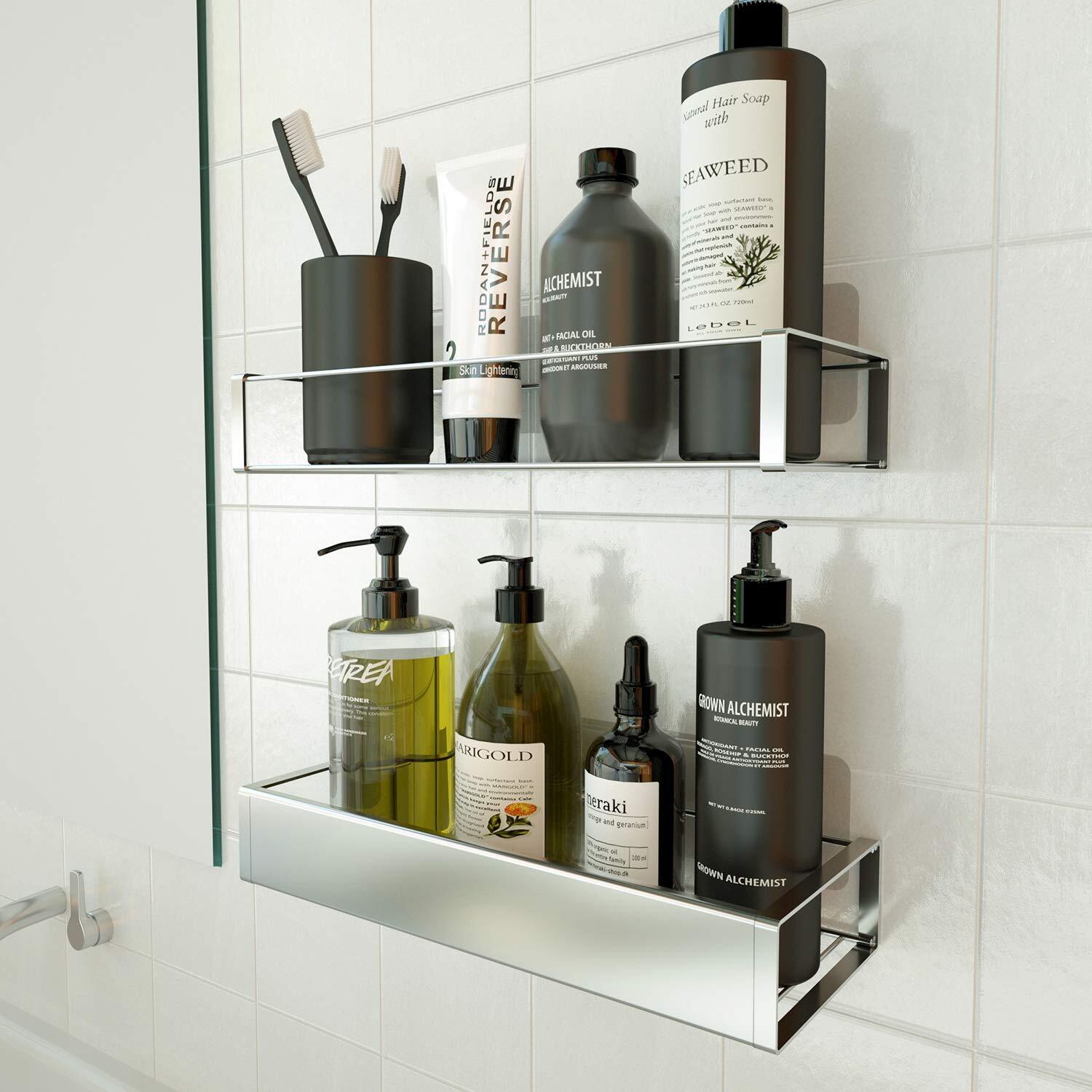 Pamyo 浴室用ラック お風呂ラック バスルームラック 強力粘着固定 防水防錆 穴あけ不要 お風呂棚 洗面所/キッチン収納 調味料/スパイス収納 洗濯機横収納 防錆ステンレス 賃貸対応 フック付き 2段式 シルバー | KSショップ