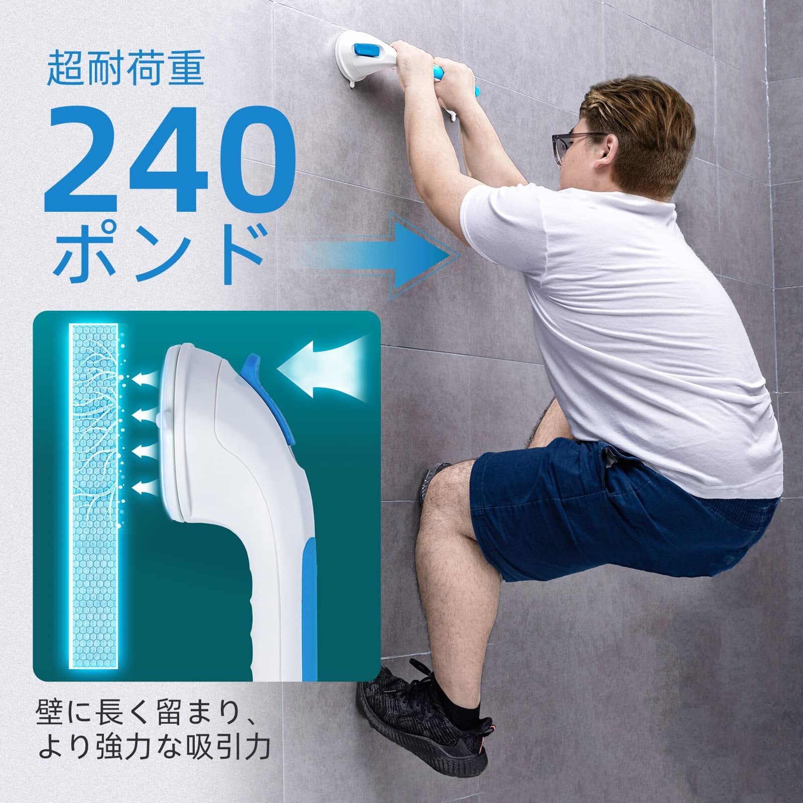 抜群な吸盤デザイン:強力吸盤はアップグレードされたより厚いTPE素材で製作しており、より耐久性があり、更に強力です。超耐荷重で、壁に長く掛けられ、より強力な吸引力を備えています。手すりの取っ手が広く、持ちやすくなっています。 広いグリップエリアは強い吸引力をできます