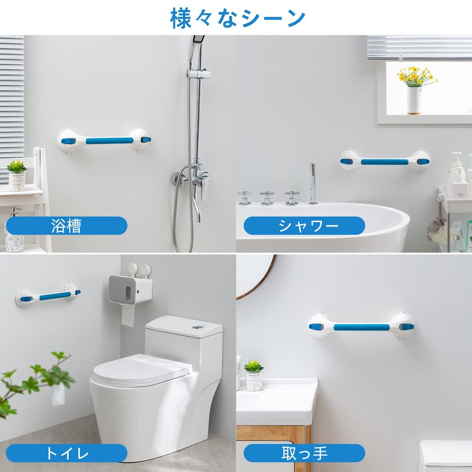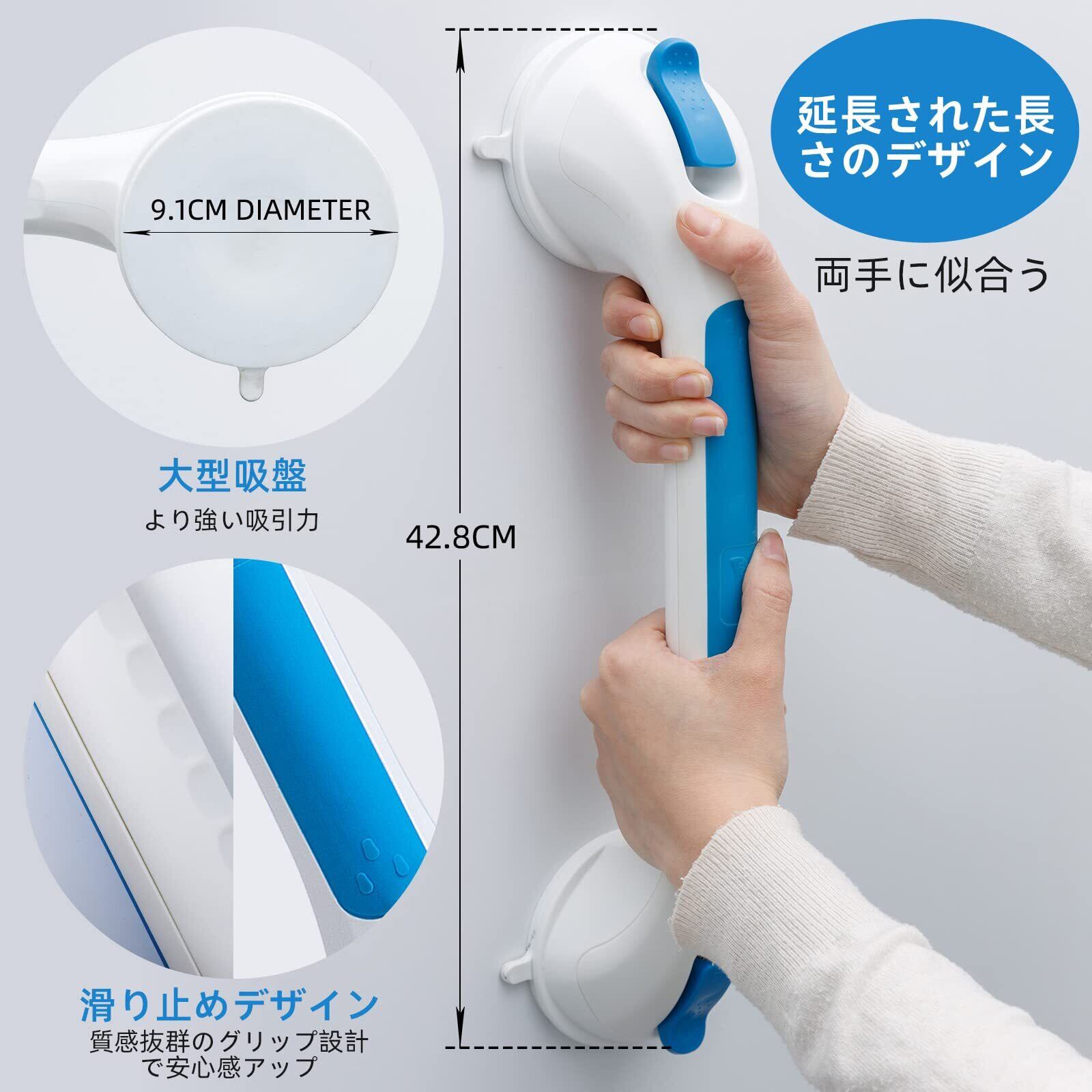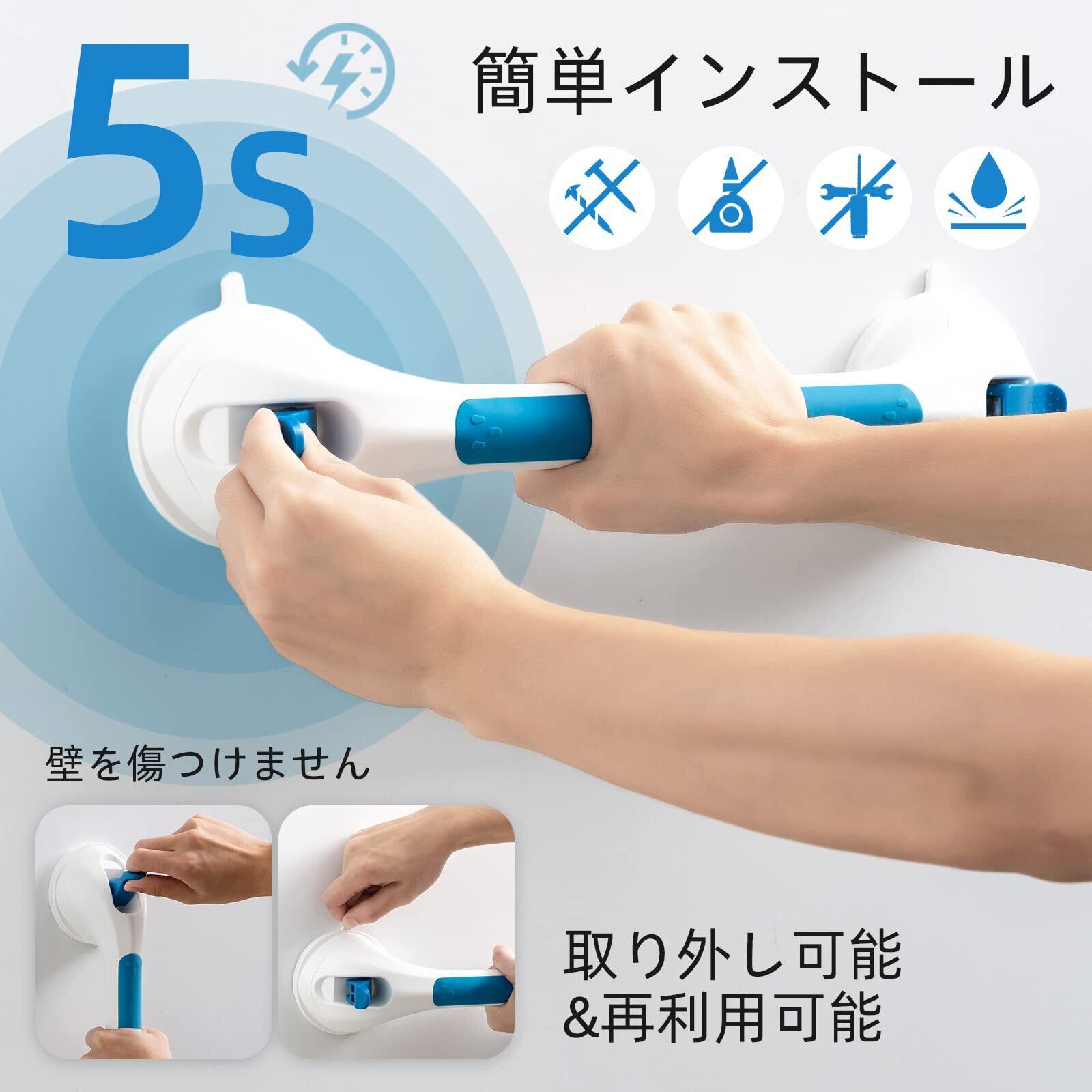 TAILI 手すり 強力吸盤 浴槽手すり 吸盤シャワー 風呂 ドアハンドル ドアノブ 取っ手 浴室 トイレ バス 玄関手摺 入浴介助 高齢者 子供 転倒 予防 敬老の日 穴あけ不要 取り付け簡単 ブルー | KSショップ